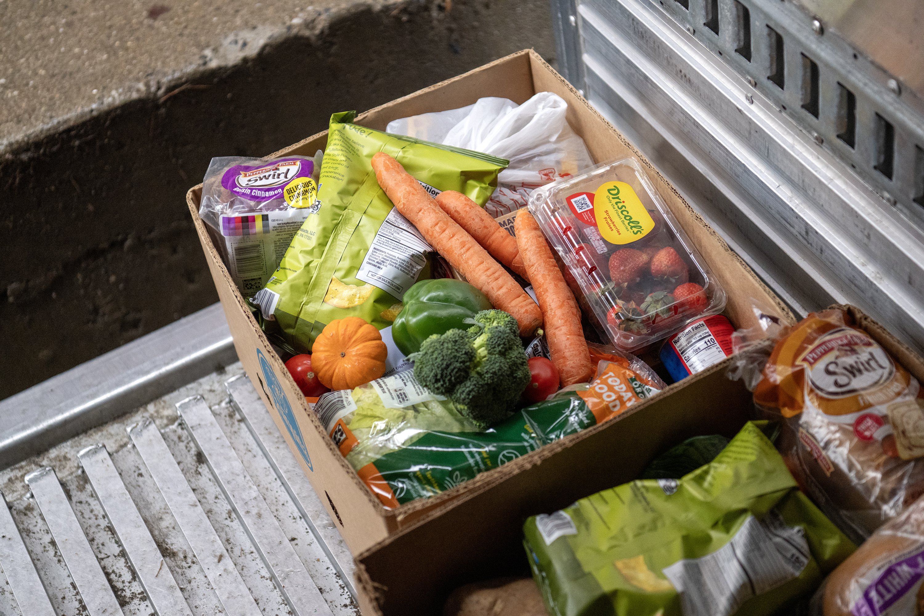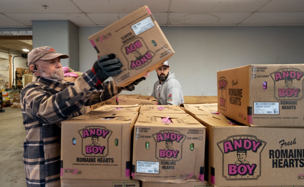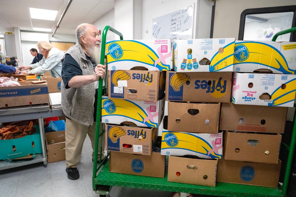 Terry Swett greeted Walmart employees by name as he headed inside to find a pallet stacked with a couple dozen banana boxes. He made quick work of writing down the contents — frozen meat and vegetables, bags of fruit, boxes of shelf-stable food — and used a pallet jack to maneuver it into the back of the empty truck.
