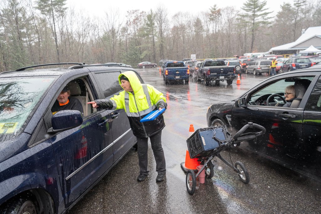 While volunteers in brightly colored safety vests directed vehicles through the parking lot, Swett greeted people in their cars. She knows, or at least recognizes, most of them. After checking in with a woman who was picking up diapers for her granddaughter, Swett’s phone rang again.
