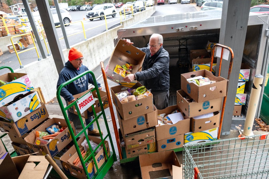 At least five days a week, two trucks from the food bank spend hours on the road. Volunteers drive through several counties to pick up food from Hannaford, Shaw’s, Sam’s Club, Costco, Walmart, Whole Foods and Wayside Food Programs.