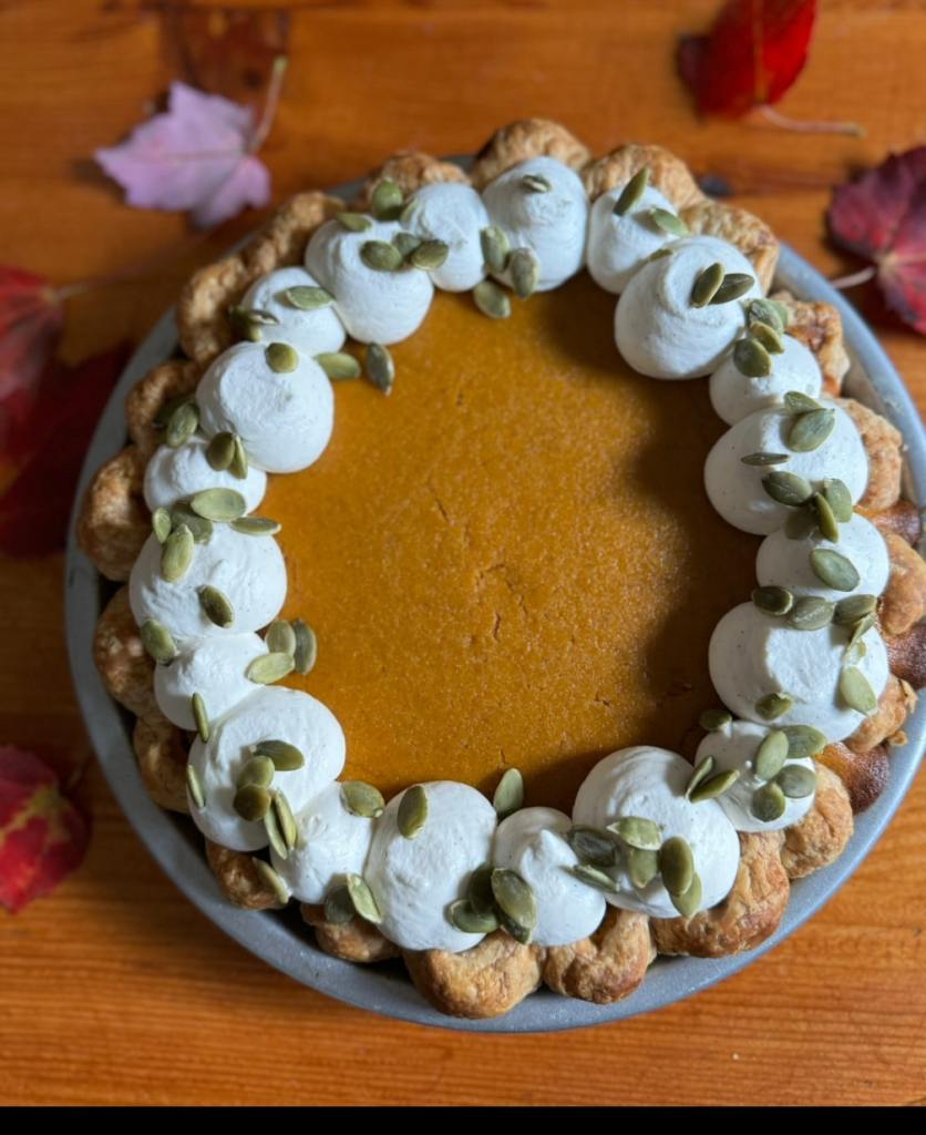 Waxwing co-owner and head baker Hannah Buoye fills her buttery, flaky crusts with local farm produce: apples, pumpkin and squash from Snell Family Farm in Buxton, cranberries from Sparrow Farm in Pittston. She tops her Apple Cranberry pie with streusel made with Maine Grains Oats, and her sour cream and maple syrup-enriched pumpkin filling with whipped cream and toasted pumpkin seeds.