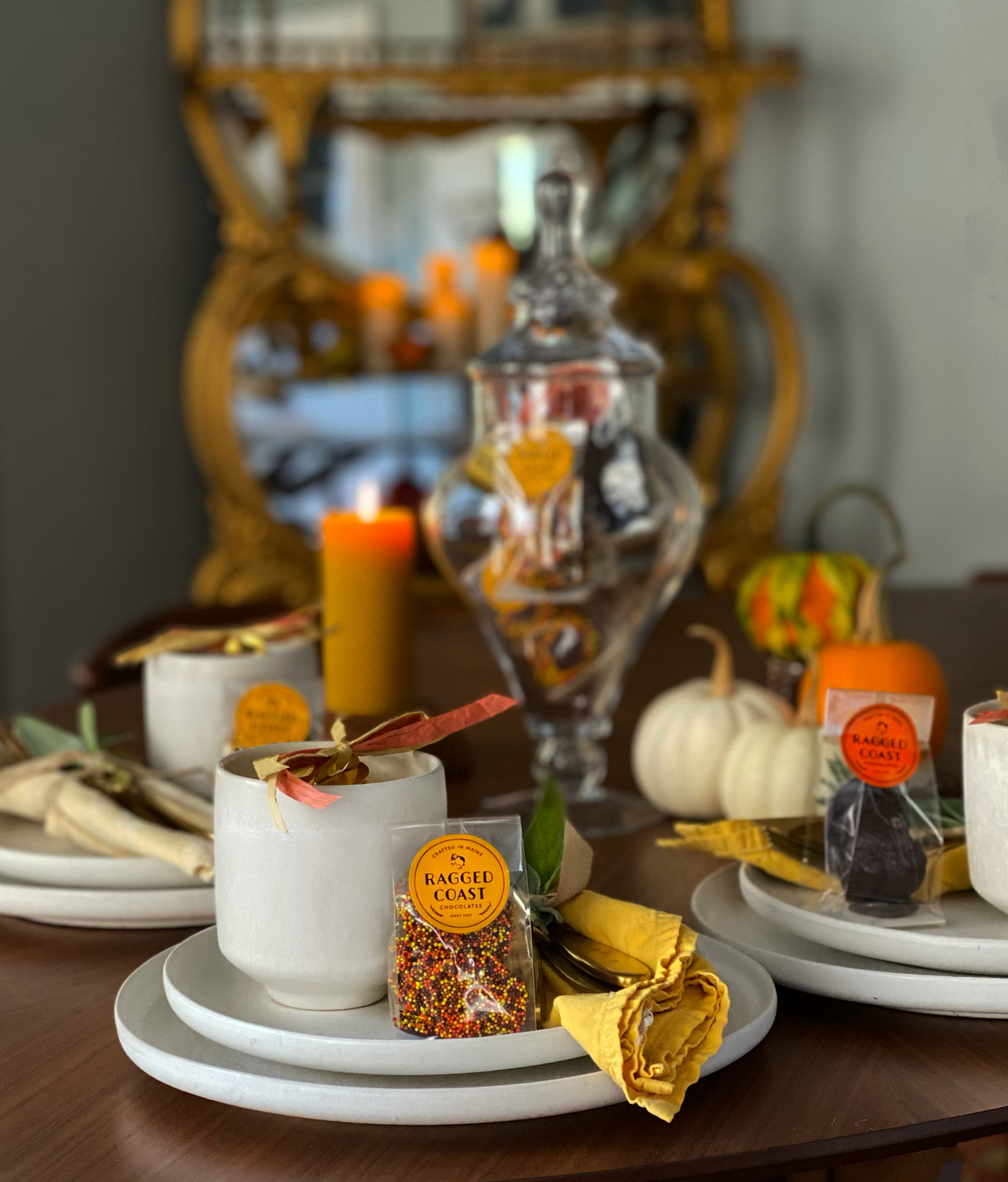 The goods: Thanksgiving Chocolate Table Bundle, four complete boxed settings, $67.80