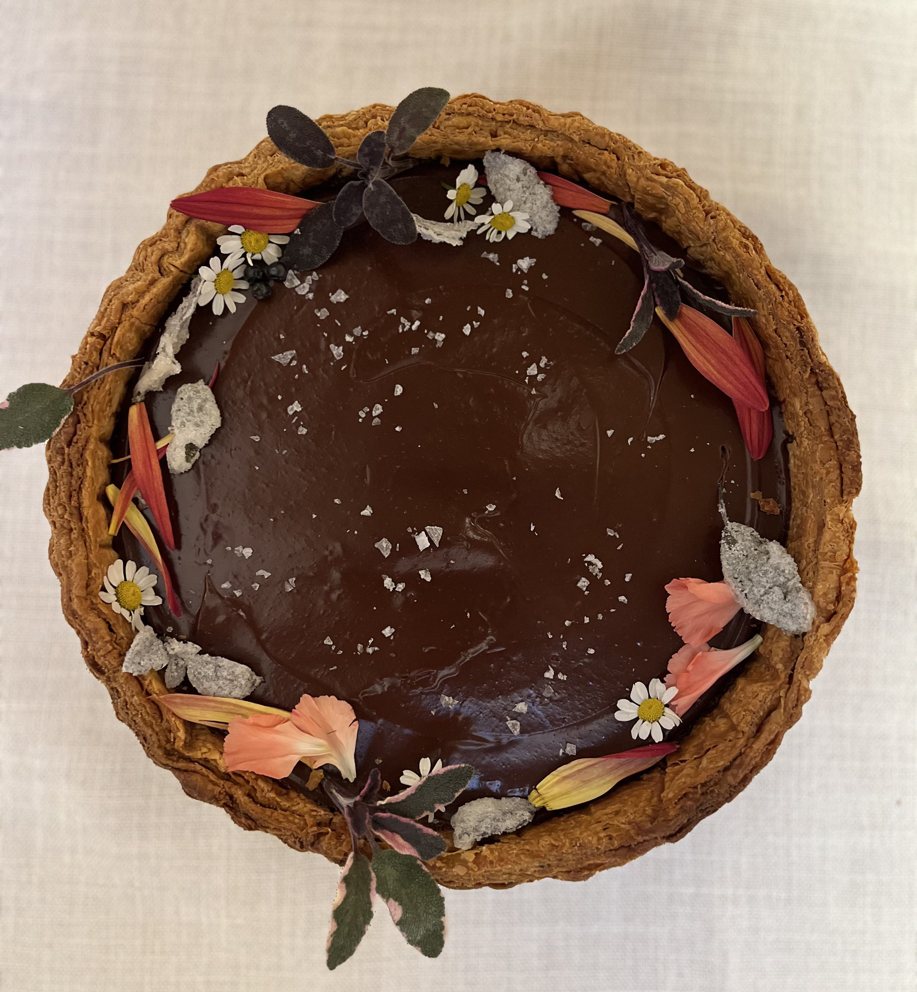 The creamy filling in her Sweet Potato Pie uses Goranson Farm spuds, topped with caramel creme anglaise ganache made from Valrhona 66% dark chocolate, all encased in graham flour puff pastry. And it’s a whopper, 3 inches high. “I’m Midwestern,” Macon explained. “We make ’em big.”