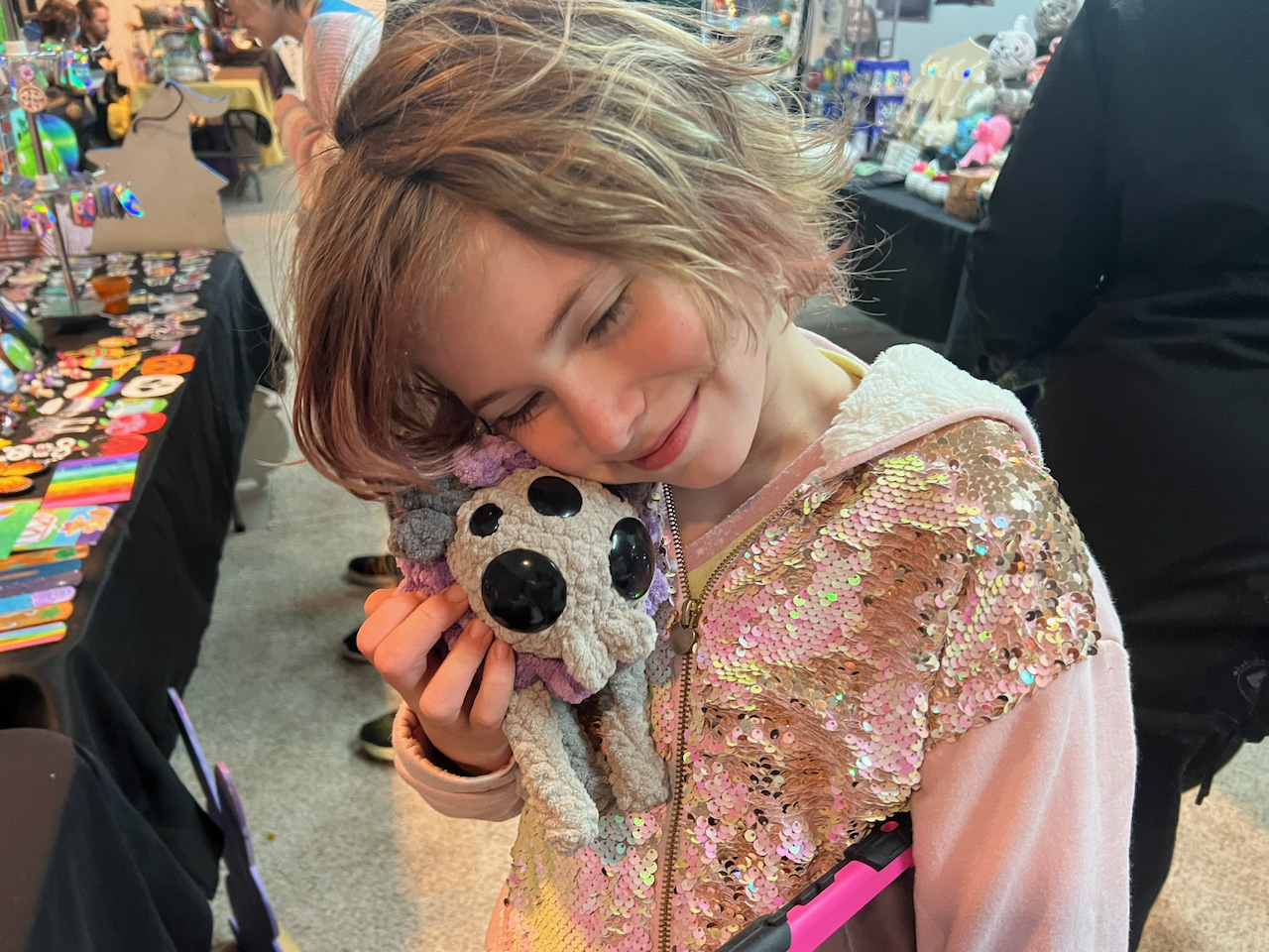 Diana York clutches a plush toy she bought at the 2024 Nor’ Geekster. (Photo by Julie York)