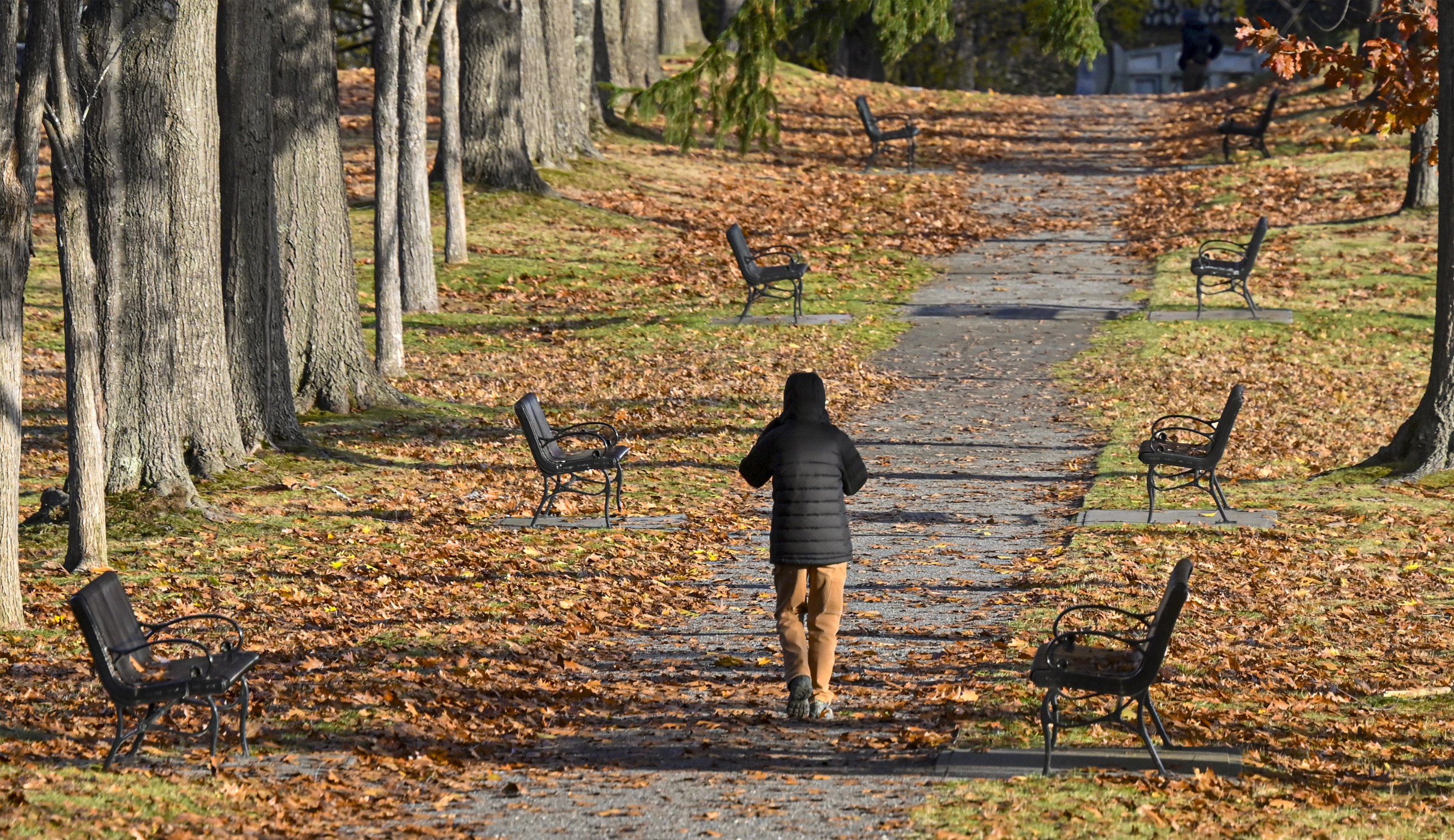 (Joe Phelan/Staff Photographer)A person walks down a leaf-covered path past benches Wednesday in Capital Park, located between the Maine State House and the Kennebec River, in Augusta. Set aside in 1827, when the complex was established, the park served as a parade ground and encampment site during the American Civil War, and saw agricultural use before being formally designed as a park in the 1920s by the Olmsted Brothers. (Joe Phelan/Staff photographer)Gary Clendening reaches up and touches the Revere and Son bell Nov. 14 before a crane lifted it into the bell town at the Christ Episcopal Church on Gardiner Common in Gardiner. SEE FULL GALLERY (Joe Phelan/Staff Photographer)Workers attach straps to lift the Revere and Son bell back into the repaired bell tower Nov. 14 at the Christ Episcopal Church in Gardiner. The Rev. Kerry Mansir, rector of the church, said the spire and bell were removed so there would be less weight on the walls while the tower was being repaired. (Joe Phelan/Staff Photographer)Bates’ Ciara Geraghty dribbles by Amherst’s Emma Zhang on Saturday during a field hockey game in Lewiston. (Anna Chadwick/Staff Photographer)Winthrop/Monmouth/Hall-Dale celebrates defeating Morse in the Class D south final Nov. 14 in Winthrop. (Anna Chadwick/Staff Photographer)