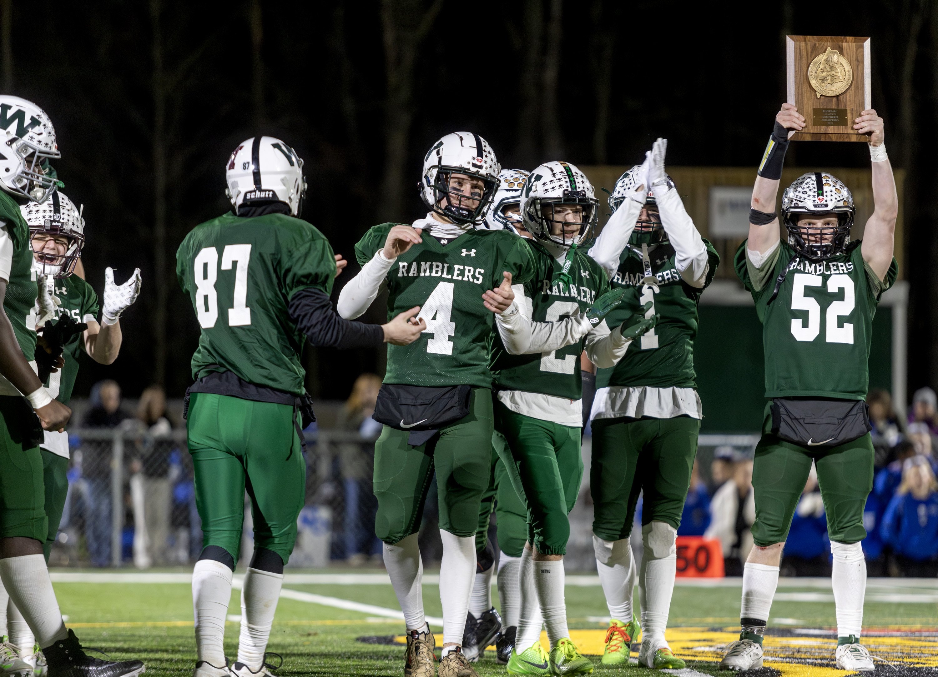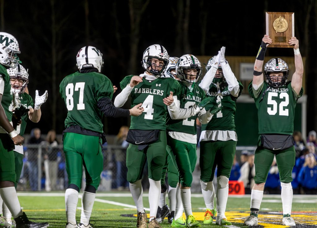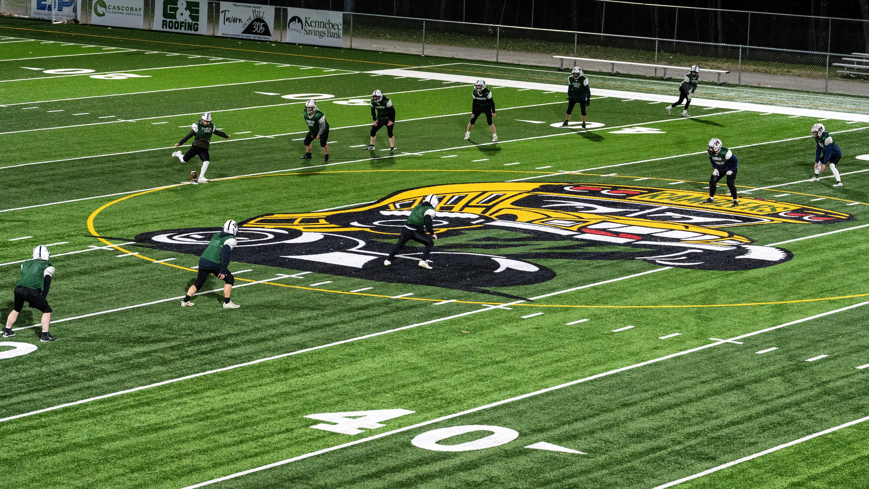Winthrop players practice kickoffs Tuesday at Charlie’s Field in Winthrop. The undefeated Ramblers play for the Class D football state championship Saturday against Winslow.
