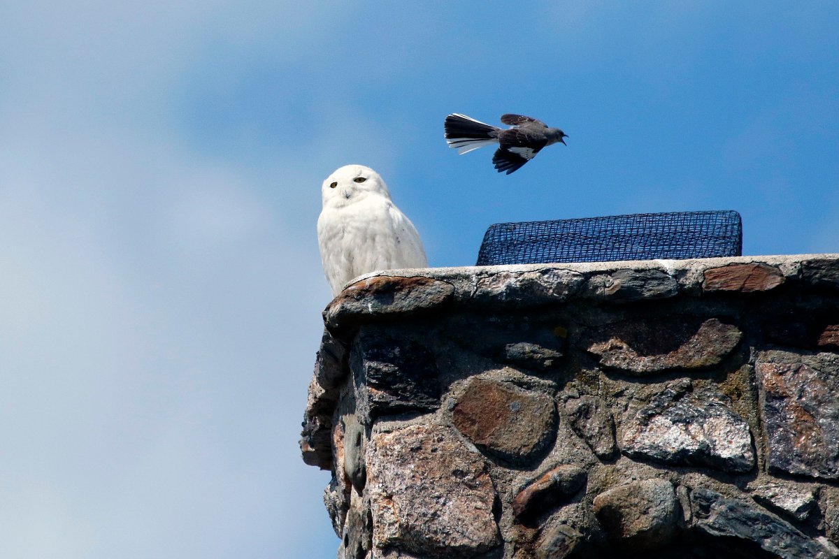 As exciting as it is, I do worry a bit because of the attention that these owls attract. Owls in general appeal to even the least-nature-loving individuals because of the birds’ secretive nature (generally being nocturnal). I’ve also heard people claim that owls’ forward-facing eyes give them a human-like appearance that people are naturally attracted to. This appeal, plus the way that owls can seem very approachable, leads to excessive harassment, and we see evidence of it on social media every year. Snowys seem approachable because they will often sit still even as people approach, but this is because their main defense is camouflage, so they probably think that if they sit still, they won’t be harmed. Unfortunately, many people, even those equipped with long telephoto lenses, can’t resist approaching closer than they should and often flush the resting birds. For birds that are trying to conserve energy, these repeated flushings can become deadly if the bird is forced to keep wasting energy to get away from its gawkers.