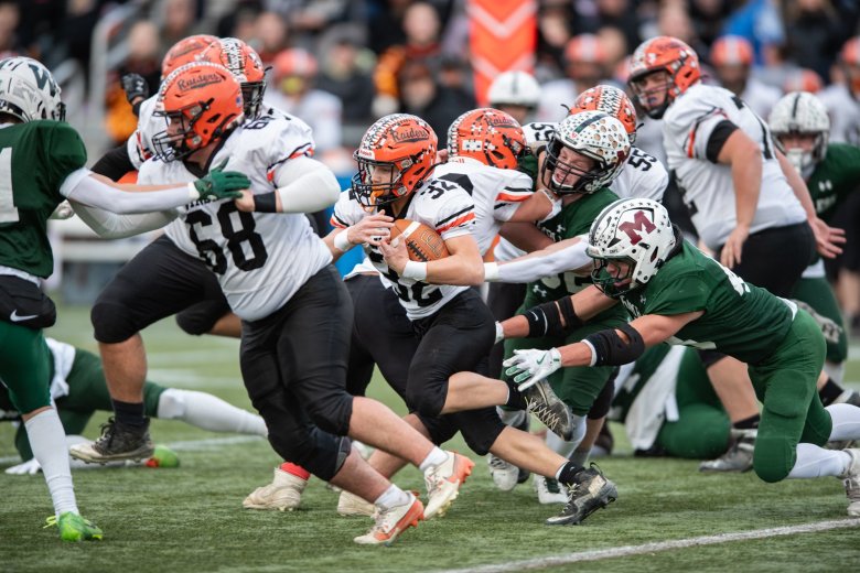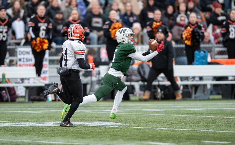 Senior quarterback Jacob Feith was 4 of 5 passing for 167 yards and two touchdowns, all in the first half. Junior running back Carter Rand added a 10-yard touchdown pass for Winthrop, which finishes with a perfect 11-0 record.