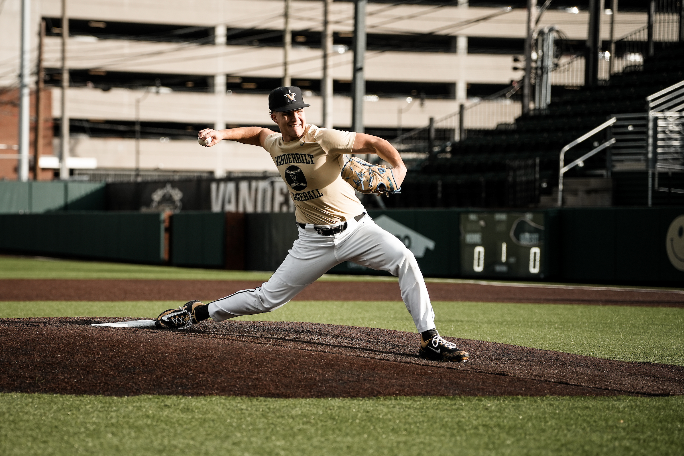 Cody Bowker of Bowdoinham pitches in 2024 for Vanderbilt University. (Courtesy Vanderbilt athletics)