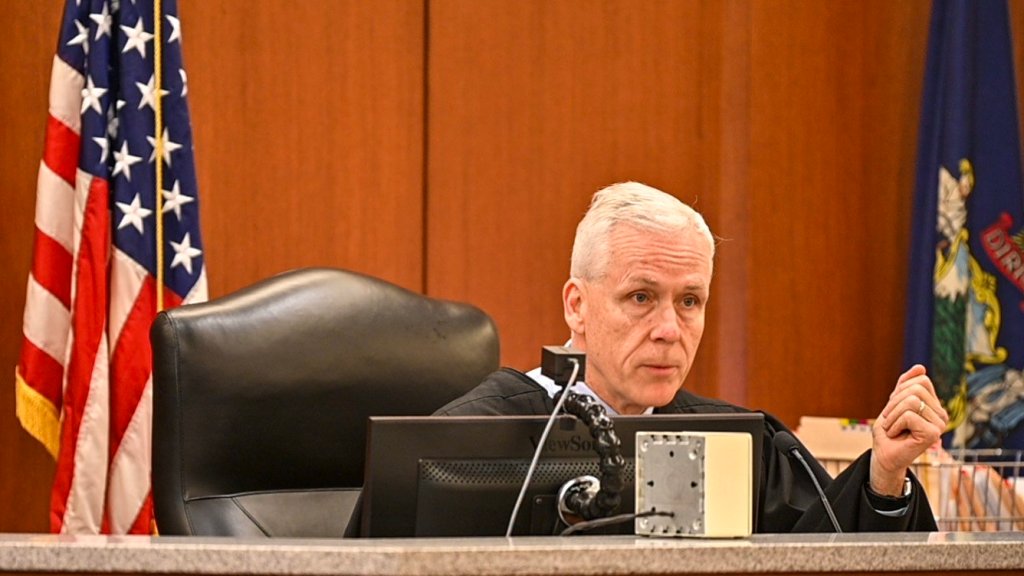 Superior Court Judge Daniel Mitchell speaks Tuesday during sentencing for Christopher Connors at the Capital Judicial Center in Augusta. (Joe Phelan/Staff Photographer)