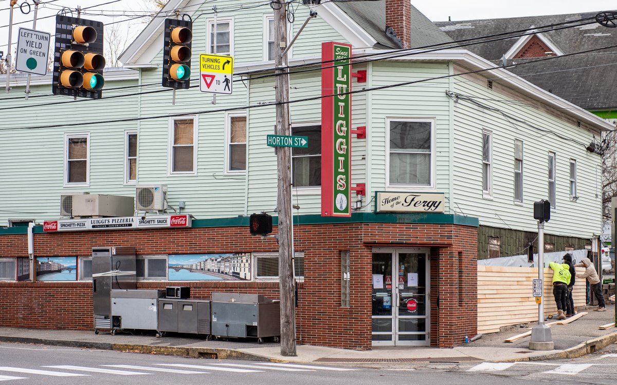 Luiggi's Pizzeria on Sabattus Street in Lewiston is pictured in October 2024, with its sign proclaiming "Home of the Fergy." The restaurant, under new ownership, closed in August. (Russ Dillingham/Staff Photographer)