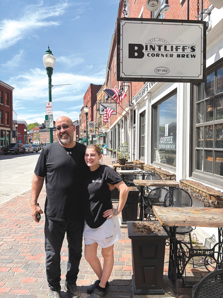 Roger and Jewel Bintliff pose for a picture outside Bintliff’s Corner Brew on beautiful Water Street in Gardiner.