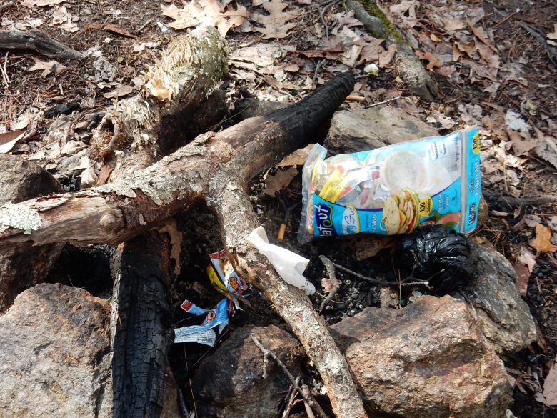 Pet peeves are many among AT hikers, and litter ranks at the top of the list. An errant candy bar wrapper from a hiker’s pocket can be excused (sort of), but not trash discarded in the firepit or the privy vault. And it’s all too common to find gallon zip-close bags of garbage left in lean-tos or at road crossings. Exposed toilet paper and excrement are big offenders. Bury your waste, please, as deep as you can. Some backcountry areas require you to pack out your TP, a good idea on heavily-trafficked trails.