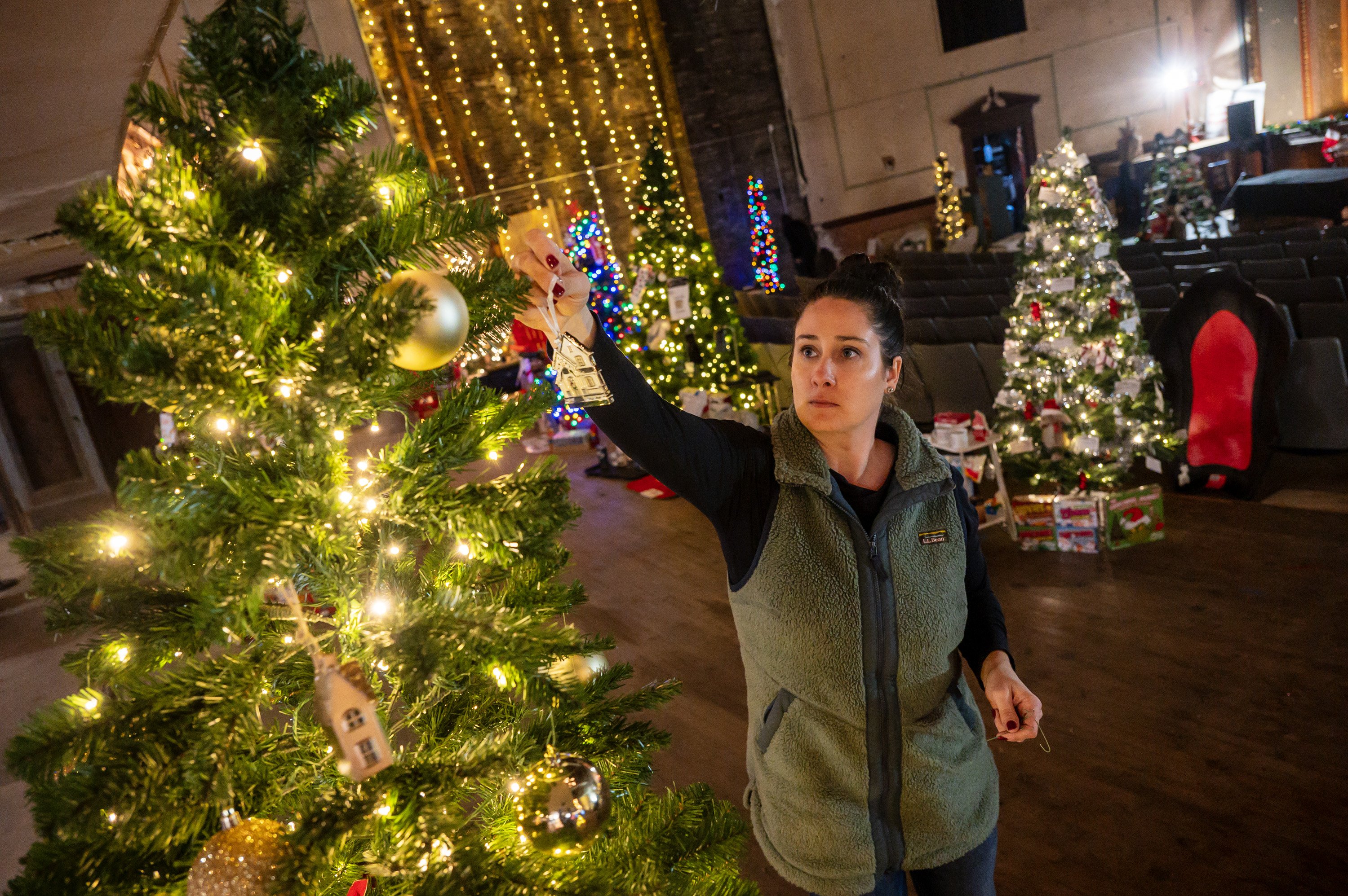 Jennifer Fox plays Cindy Lou Who in “Who’s Holiday,” during a rehearsal Monday at Cumston Hall in Monmouth. The one-woman show revisits the sweet Cindy Lou as an adult. (Joe Phelan/Staff Photographer)Megan Mercier photographs the plaque on one of the trees Nov. 22 during dedication event for the Hallowell Lights on the Kennebec, a public art installation by Hallowell resident Kieran Kammerer. The trees/lights are intended to be a winter replacement for the famous rainbow chairs on the bulkhead in Hallowell’s Granite City Park, which have become a symbol of the city since their introduction in 2015.(Joe Phelan/Staff Photographer)Heather Pouliot reaches up to put another ornament on the Pouliot Real Estate tree Wednesday at the Colonial Theater located at 139 Water St. in downtown Augusta. There are 28 trees at the Augusta Downtown Alliance’s eighth annual River Of Trees fundraiser that runs through Sunday. (Joe Phelan/Staff Photographer)Volunteer Vicki Dill, right, keeps the mood light Thursday as she helps other volunteers that served food during a free Thanksgiving meal at the Boys and Girls Club of Kennebec Valley in Gardiner. Dill has volunteered at the event for 22 years. (Rich Abrahamson/Staff Photographer)Jesse Stanford uses pine boughs Wednesday to decorate the front of Freckle Salvage Company at 129 Main St. in Winthrop. Stanford and his wife, Nikki Stanford, own the business. (Rich Abrahamson/Staff Photographer)Gardiner’s Matthew Moody looks to block Nolan Brown during a practice drill Monday in Gardiner. (Anna Chadwick/Staff Photographer)Aurora Centeio, left, tries squash Thursday while sharing with her dad, Hunter Centeio of Augusta, during the Scottish Rite of Augusta Valley and Hermon Lodge No. 32 free Thanksgiving meal at the Boys and Girls Club of Kennebec Valley in Gardiner. (Rich Abrahamson/Staff Photographer)