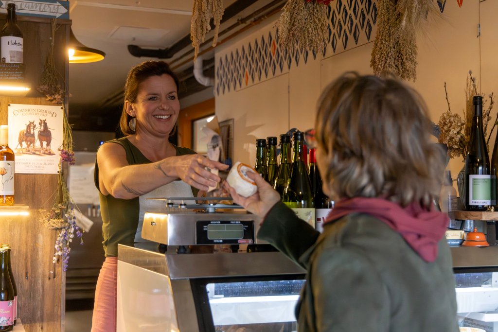 Ewan Barnicoat places canned goods into Thanksgiving boxes Nov. 21 at Gardiner Area High School in Gardiner. The school’s National Honors Society members organize the event annually. (Anna Chadwick/Staff Photographer)Amy Rowbottom cashes out a customer purchasing cheese Monday at Crooked Face Creamery in Skowhegan. (Anna Chadwick/Staff Photographer)