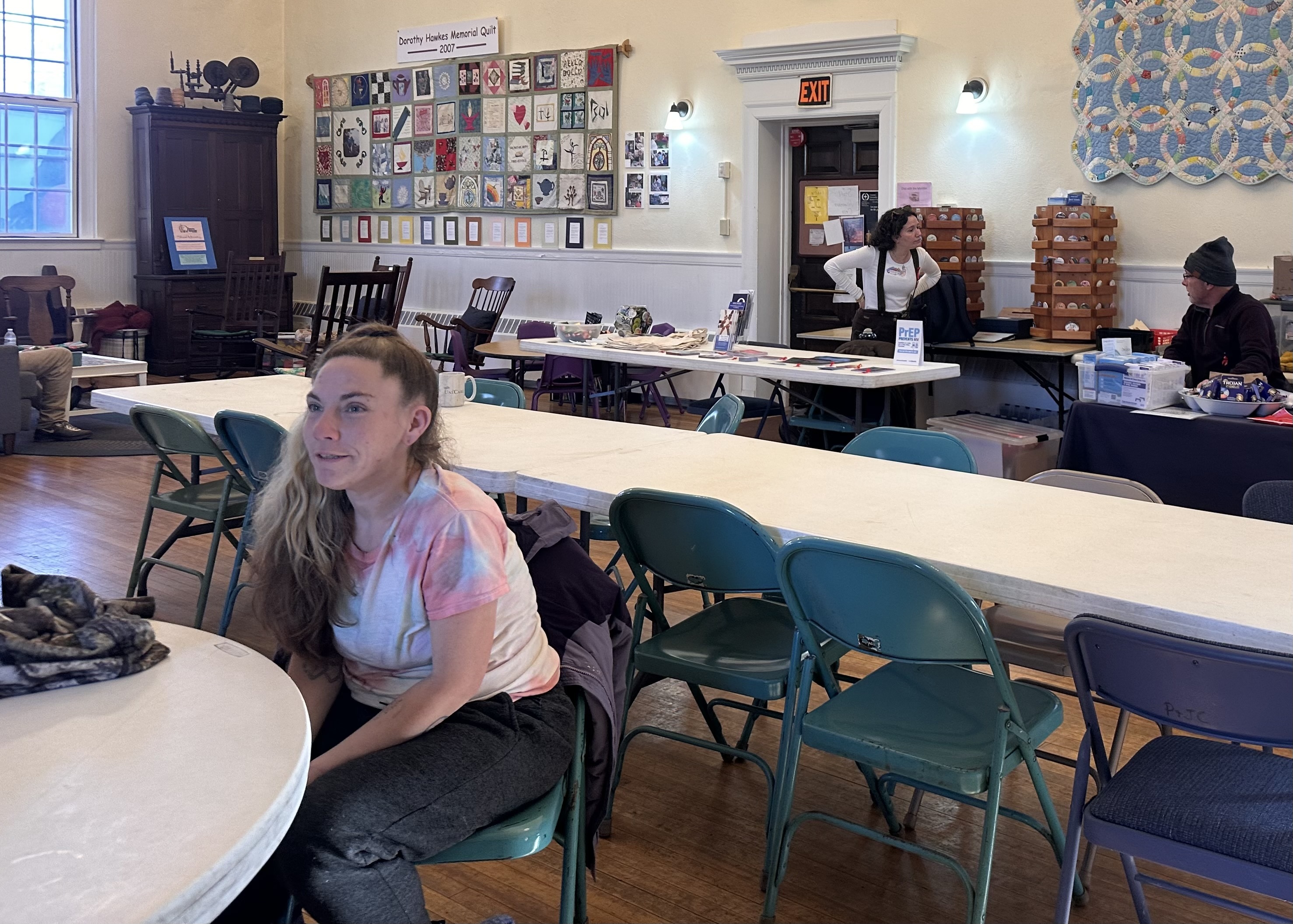 Gabrielle Drew chatted with employees from Needlepoint Sanctuary of Maine, a Bangor nonprofit that provides harm reduction and syringe services. Drew, who lives in Bangor and is unhoused, said she decided to get on PrEP as HIV cases increased this year.