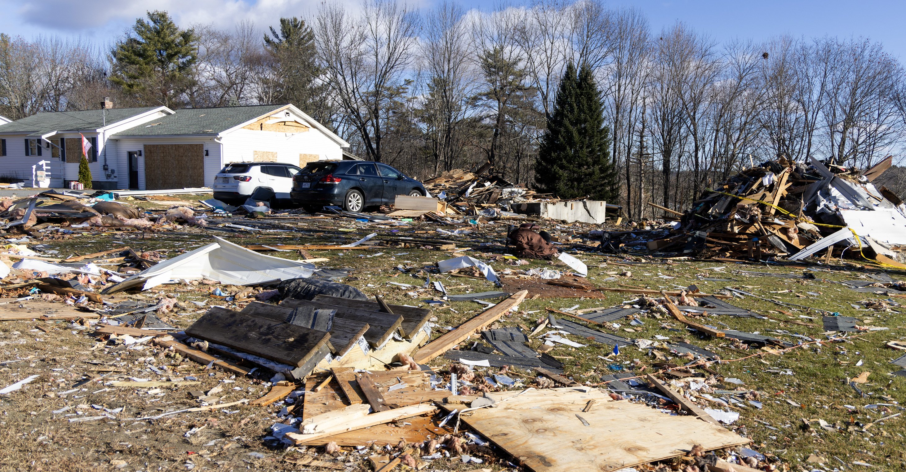 At the scene Monday, the property looked like a war zone, with wood, insulation, twisted metal, furniture and other debris thrown not only on the Hannon property, but across the street, on neighboring lots and even in the trees.