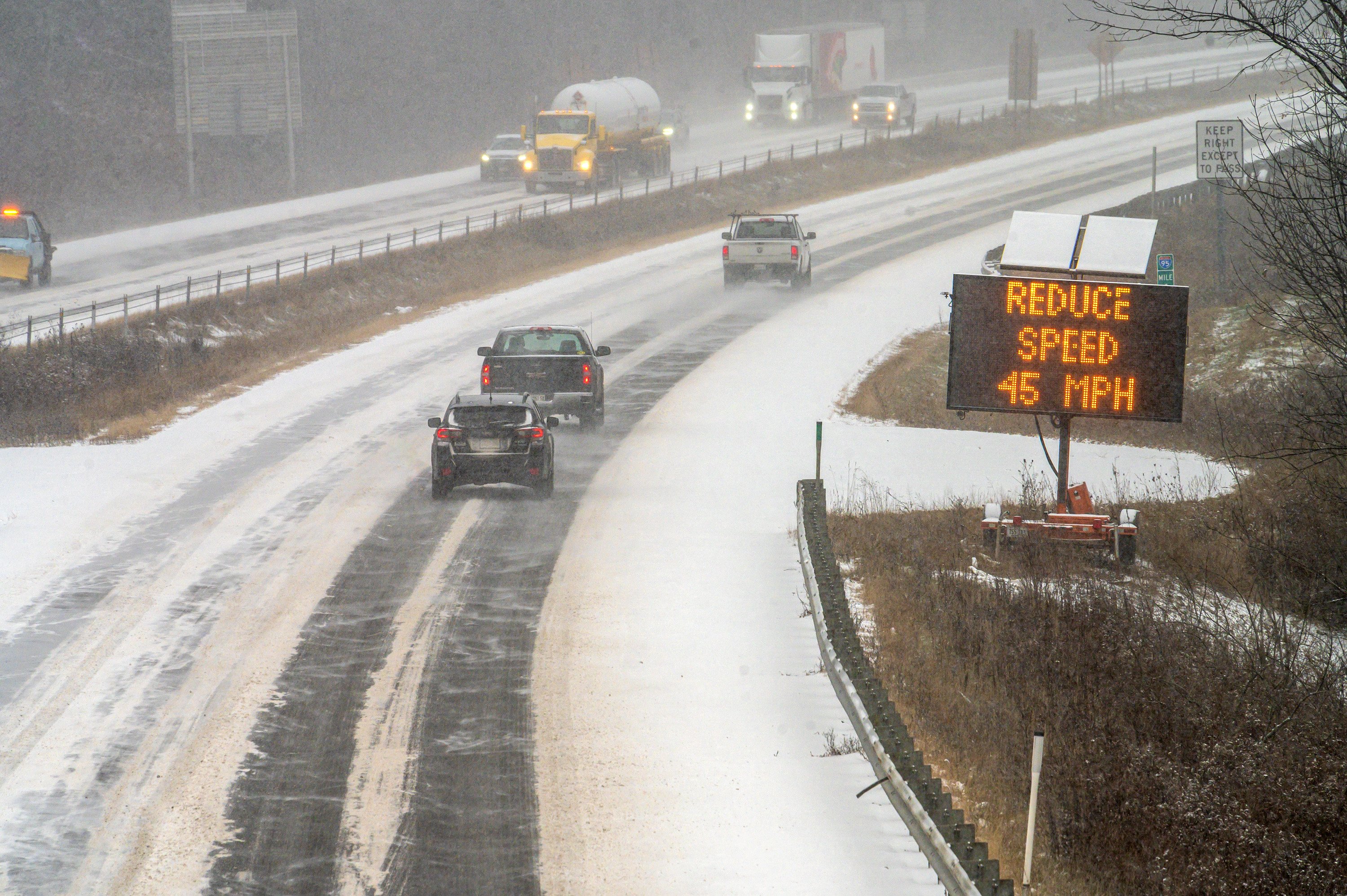 Speeds on the Maine Turnpike were reduced to 45 mph for most of Tuesday, beginning in the early morning, and no oversized vehicles were permitted on the road. The Maine Turnpike Authority reported dozens of crashes throughout the day, from Ogunquit to West Gardiner.