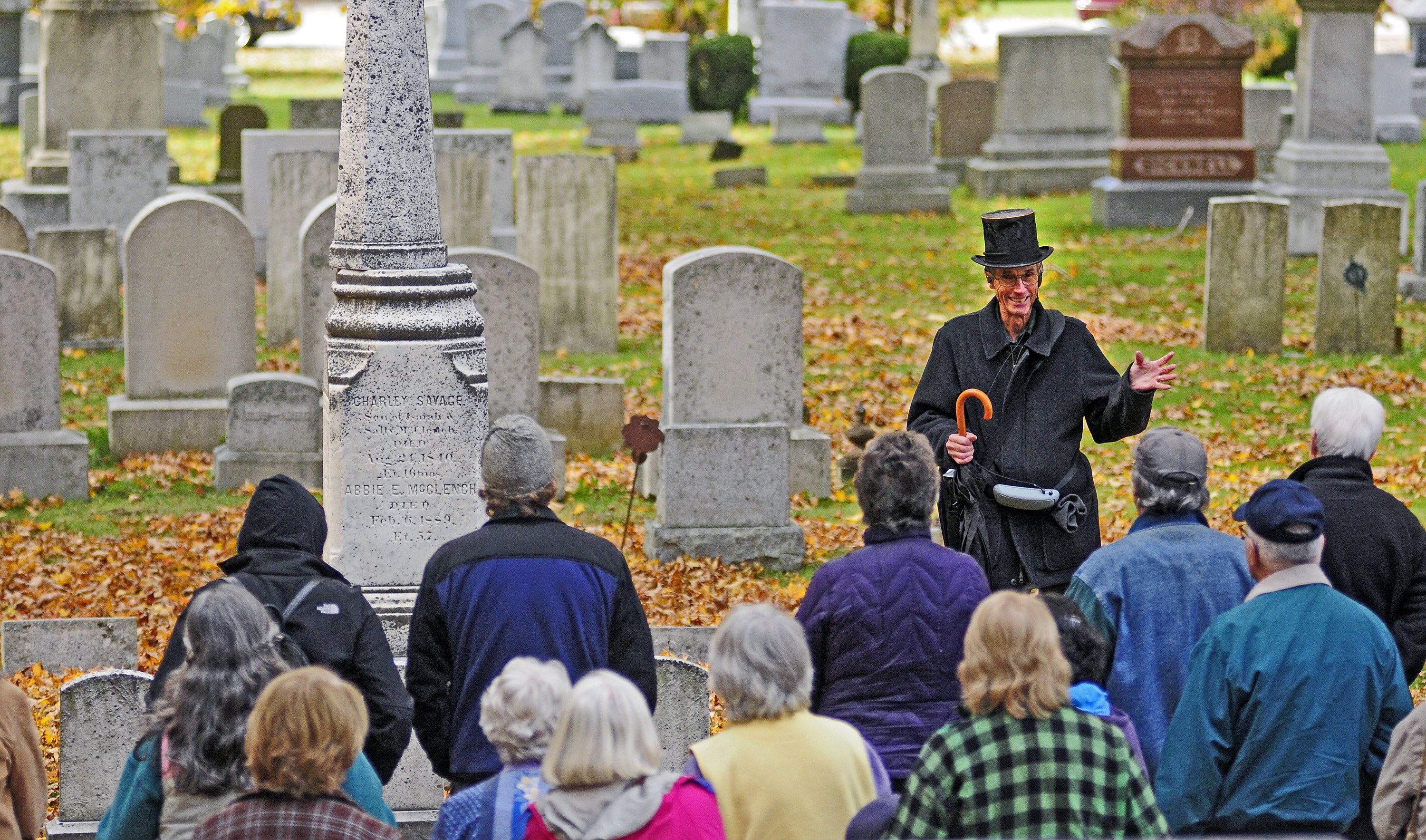 Webber also held well-attended tours of the Hallowell cemetery. He’d wear a bowtie and a suit jacket and a top hat owned by a local funeral director — one of the only times he’d dress up, Catharine said — while telling stories about famous people buried there.