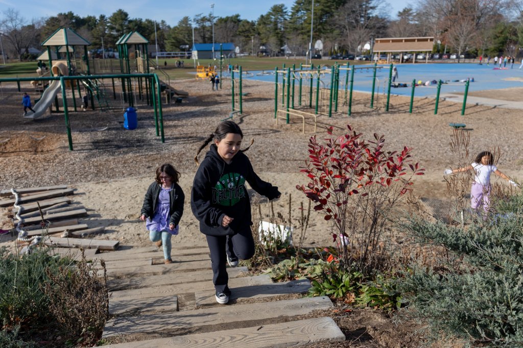 Sashie Misner, the landscape architect behind many of Maine’s nature-based school spaces, said it’s important for Maine children to know how to navigate physical challenges because they live in a state known for its dense forests and rocky beaches. Better they learn their limits in the schoolyard before tackling the Precipice Trail.