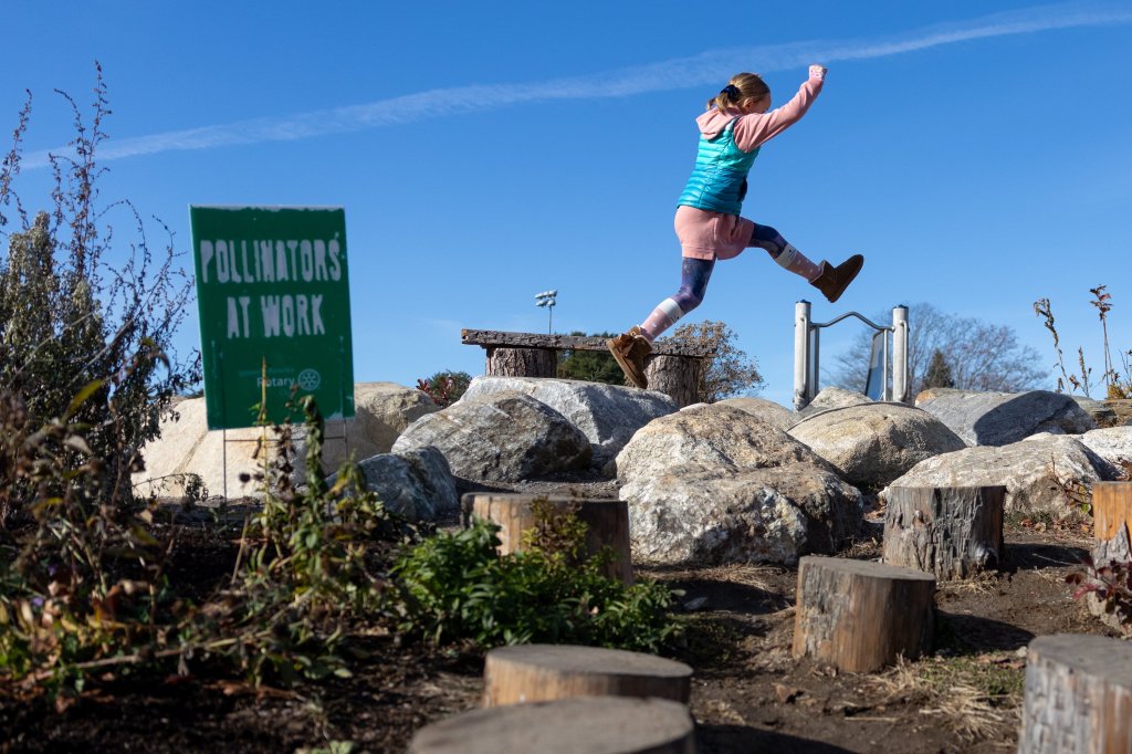 “When we say we encourage risky play, what we really mean is we are offering a safe place to learn how to face challenges, take risks and assess the consequences,” said Misner, the landscape architect. “When they’re deciding if it’s safe to jump off the boulder, they’re learning to solve problems.”