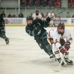 Some of Maine’s top players never skated a shift for their local high school. Westbrook native Carter Amico, currently a freshman defenseman at Boston University and the 38th overall pick in June’s NHL draft by the Philadelphia Flyers, attended Mount Saint Charles in Rhode Island before joining the United States National Development program. Falmouth’s Brock James, a freshman forward at the University of Maine, played in prep school before playing junior hockey.