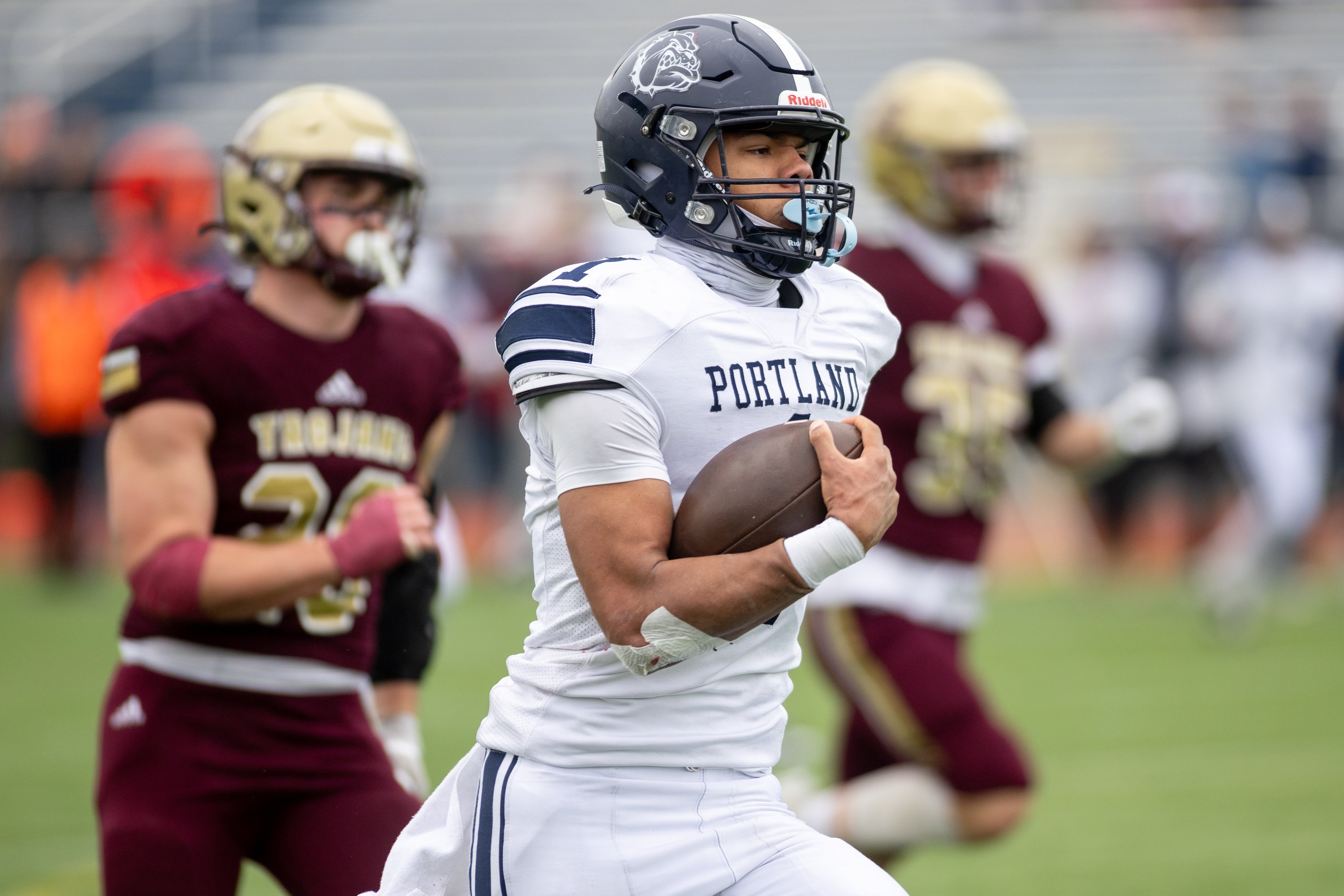 Portland quarterback Cordell Jones carries the ball on a long run during the Class A state final. (Brianna Soukup/Staff Photographer)