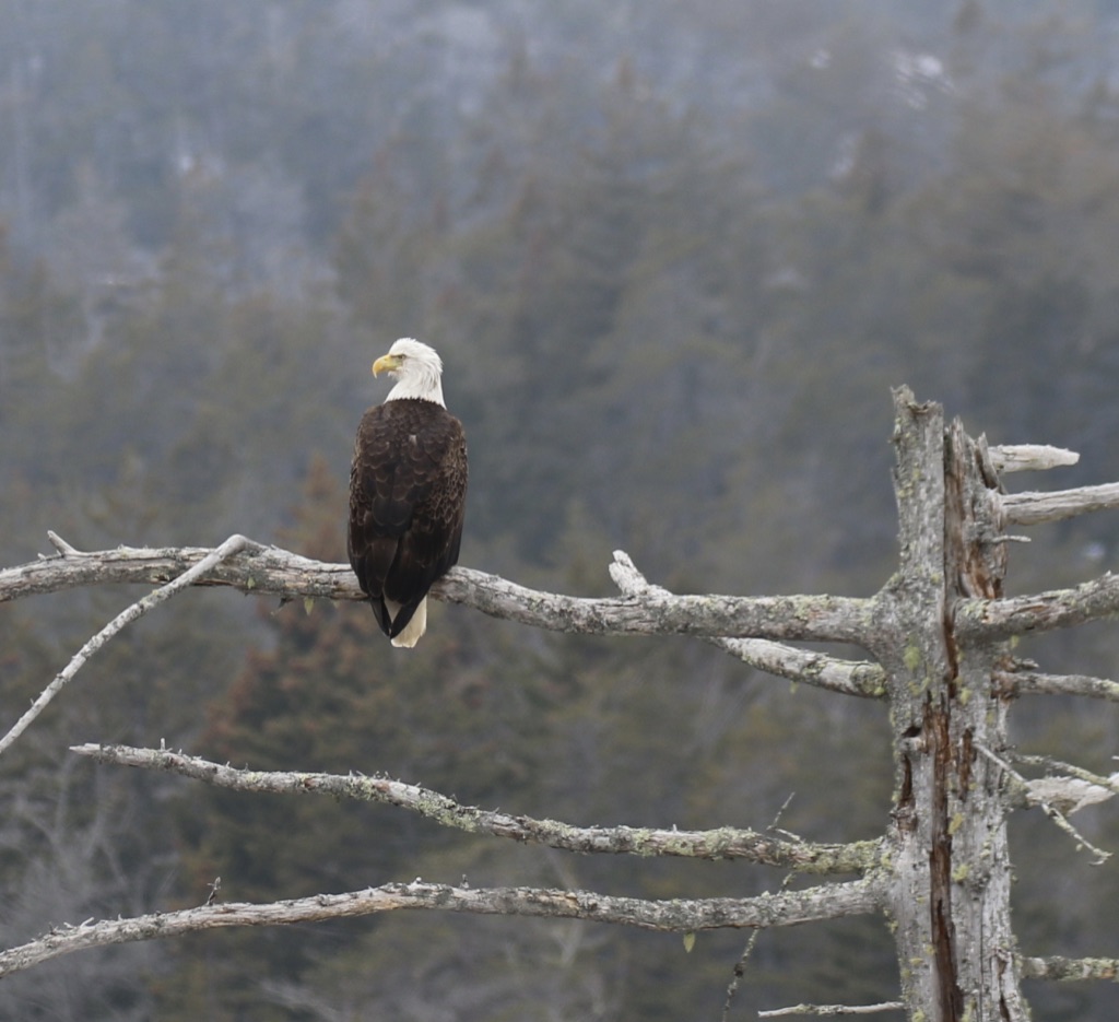 An adult bald eagle surveys the area from a favorite snag during the winter months in Maine. (Courtesy photo)