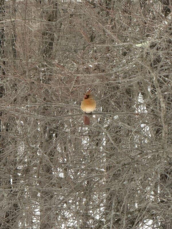 A female Northern Cardinal perches quietly among the winter branches in Wilton on Dec. 13, adding a touch of warmth and color to the snowy landscape. Submitted photo