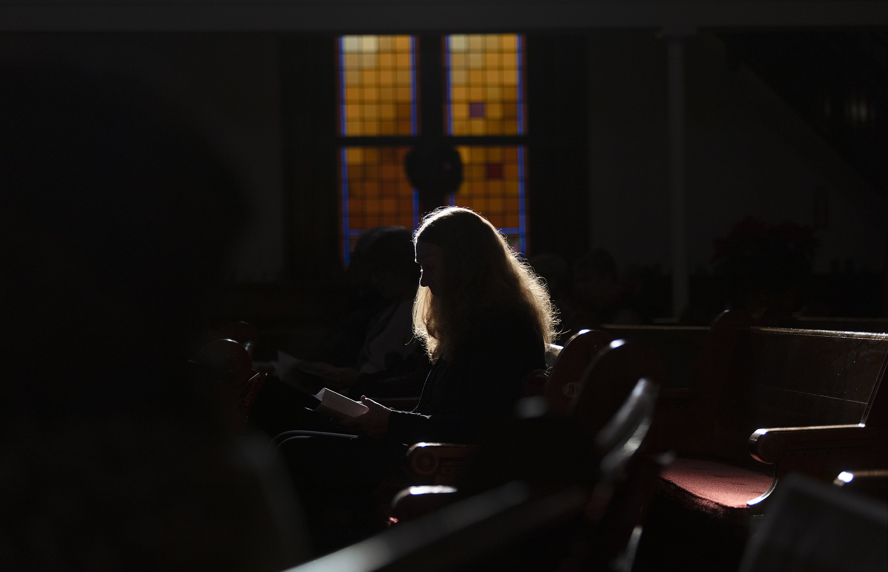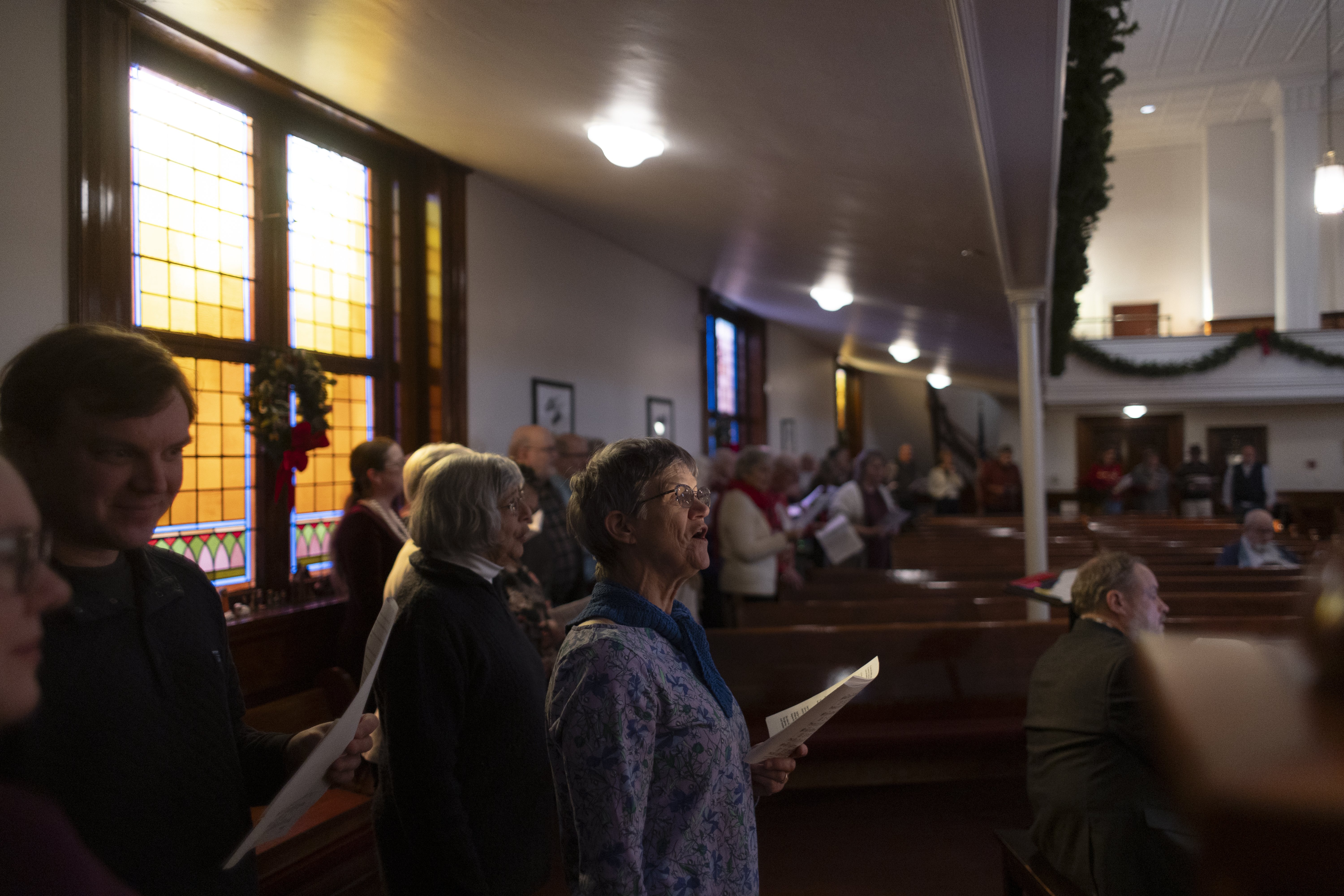 GORHAM — Standing in front of illuminated Christmas trees and crimson poinsettias at First Parish Congregational Church of Gorham, Lead Minister Christine Dyke read a letter to her congregation.