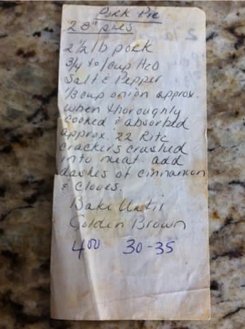 Families that moved from Quebec to find work in Maine brought with them the tradition of serving pork pie during réveillon, the feast that follows midnight Mass on Christmas Eve. Though few still celebrate réveillon, pork pie remains a holiday favorite for many families and a link to their Franco-American heritage.