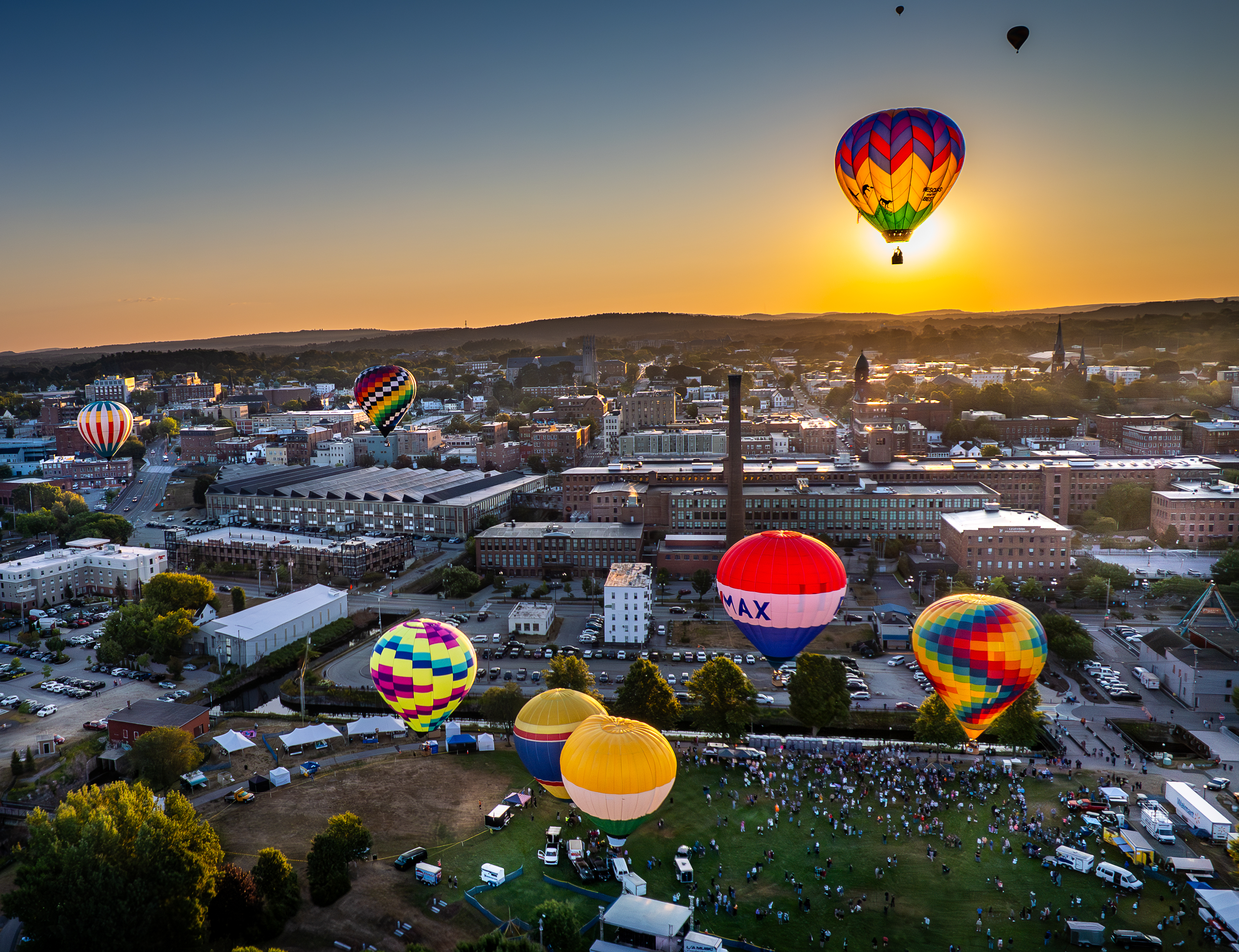 Balloons lift off on Aug. 16 at Simard-Payne Memorial Park during the Lewiston-Auburn Balloon Festival. (Russ Dillingham/Staff Photographer)