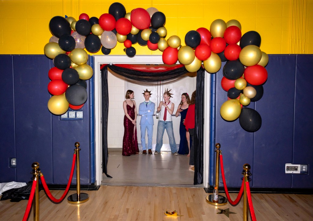 The prom night excitement couldn’t be dampened by the cold and rainy weather on May 17, when Mt. Blue High School students lined up outside the doors of the Farmington school waiting to be let in. Once the doors opened, 321 students walked down a long hallway into the “Old Hollywood”-themed night. At a time where many schools pay to host their proms at off-site locations, Mt. Blue reversed course and began hosting it at the school again in 2019. The school leaned into the classic prom elements: a gym decorated with balloons, streamers covering the doors and students running down the hallway to the dance floor when they hear a song they love.
