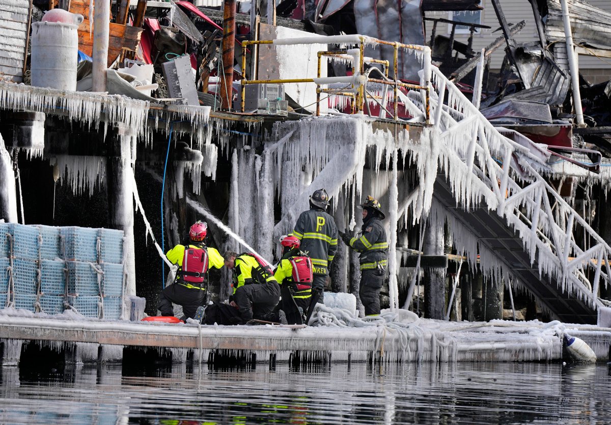 Stephen Goodrich, a co-owner of the wharf, said he was “expecting the worst” when driving into Portland on Friday night and seeing the plume of dark smoke. He said he was surprised the next day to see the fire had stayed confined to one area of the wharf and is grateful for the firefighters who got the fire under control in less than two hours.