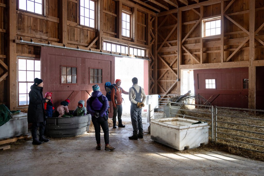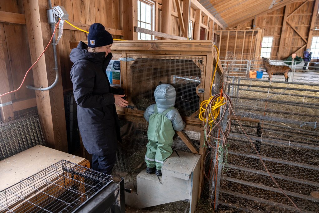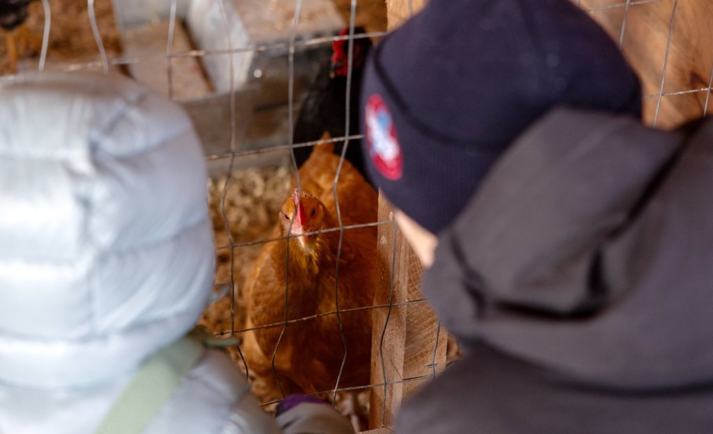 FREEPORT – A cold winter breeze blew through the Wishcamper Education Barn at Wolfe’s Neck Center on Saturday morning, rustling the feathers of the barn’s resident chickens.