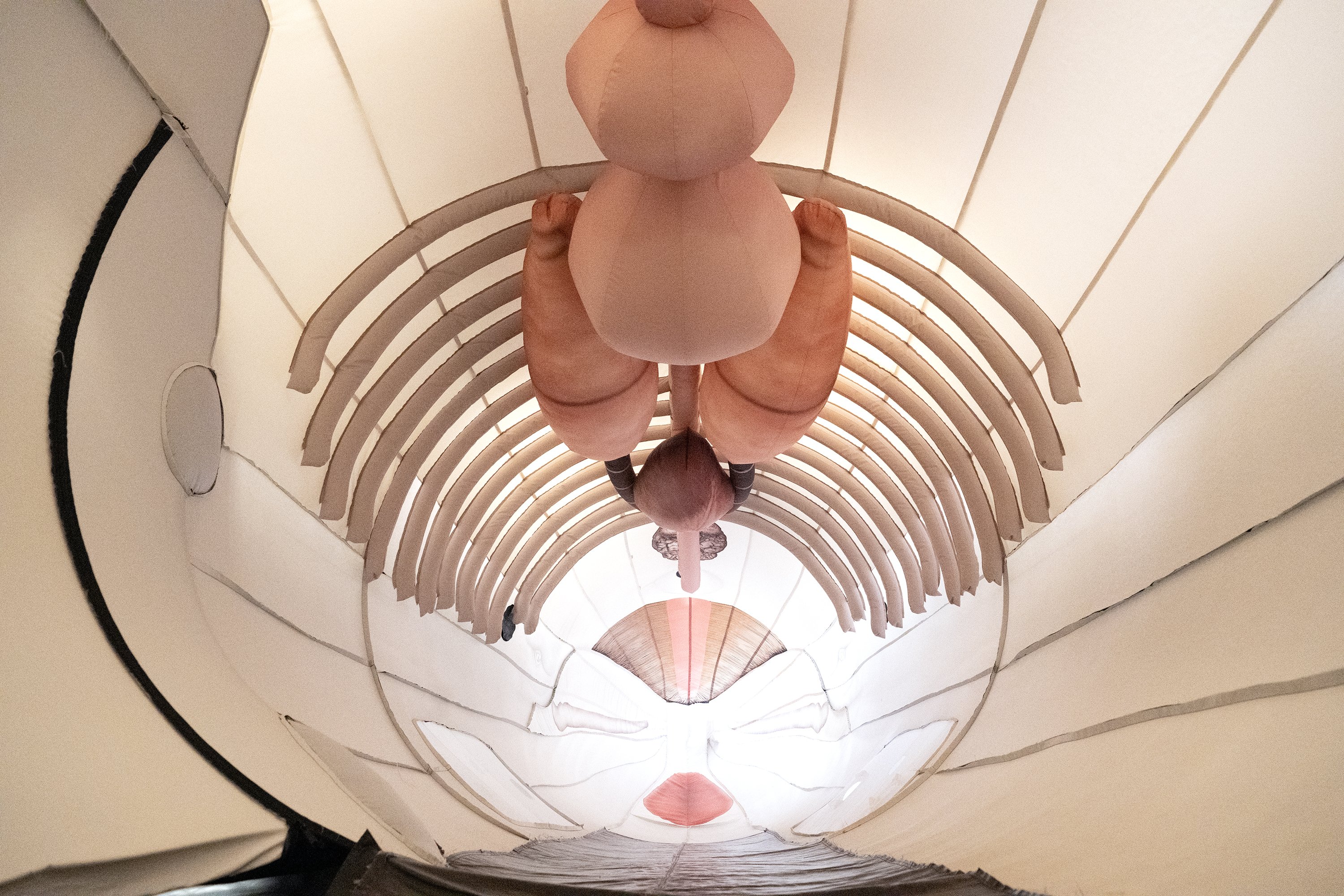 A 43-foot life-sized, inflatable humpback whale named Chunk, to be specific, with some of its features, like its baleen (instead of teeth), tongue, jaw bones, brain, blowhole, heart, lungs, three-chamber stomach, rib cage, spine and intestines included.
