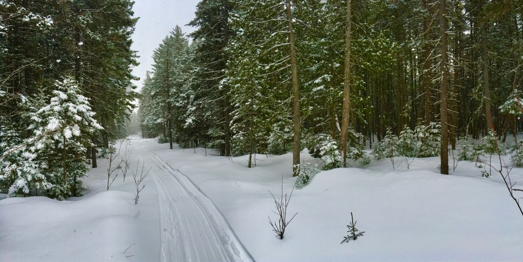 Three events that day remain crystal clear: Farnsworth starting a bonfire to make three-boil black tea to enjoy with our lunches; sitting on snowshoes near the fire, leaning against a dead tree, and watching a family of northern flying squirrels peak out from a cavity a few feet above me; and watching a calf moose follow in its mother’s snow tracks, passing so close I could hear their soft guttural conversation.