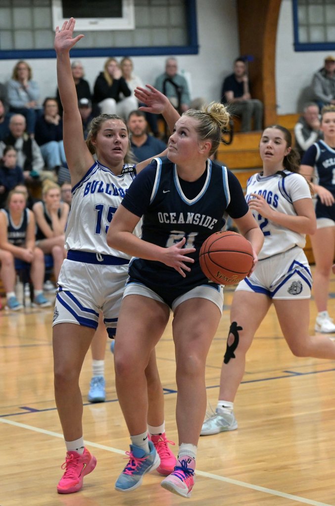 On the girls side, there’s Olivia Breen, younger sister of Bailey Breen: three-time KVAC Player of the Year, two-time state champ and current University of Maine forward. Olivia has been otherworldly dominant, averaging 27.5 points and 11.5 rebounds for 12-1 Oceanside. She scored 50 points, a program record, in last Thursday’s 77-24 win over Lincoln Academy.