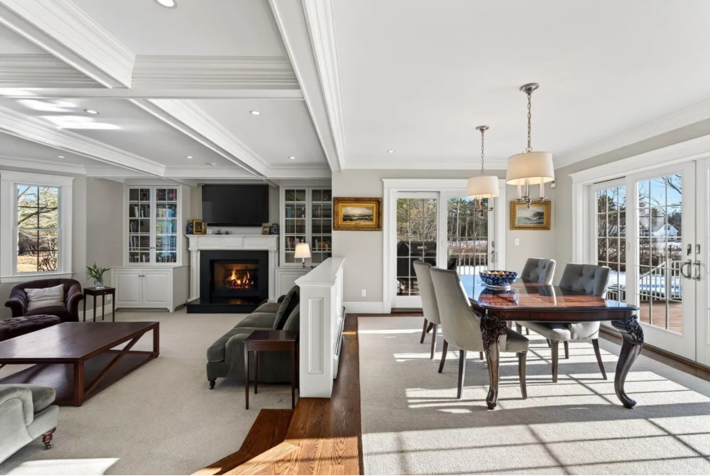 A Georgian Colonial of architectural stature, this five-bedroom Falmouth estate is set on 5.93 acres, framed by stone walls and mature landscaping, with a gated circular drive and a three-car garage. Overlooking the 3rd hole at The Woodlands, the setting offers open views and a sense of scale that feels established and enduring, with enviable proximity to Falmouth’s school campus.