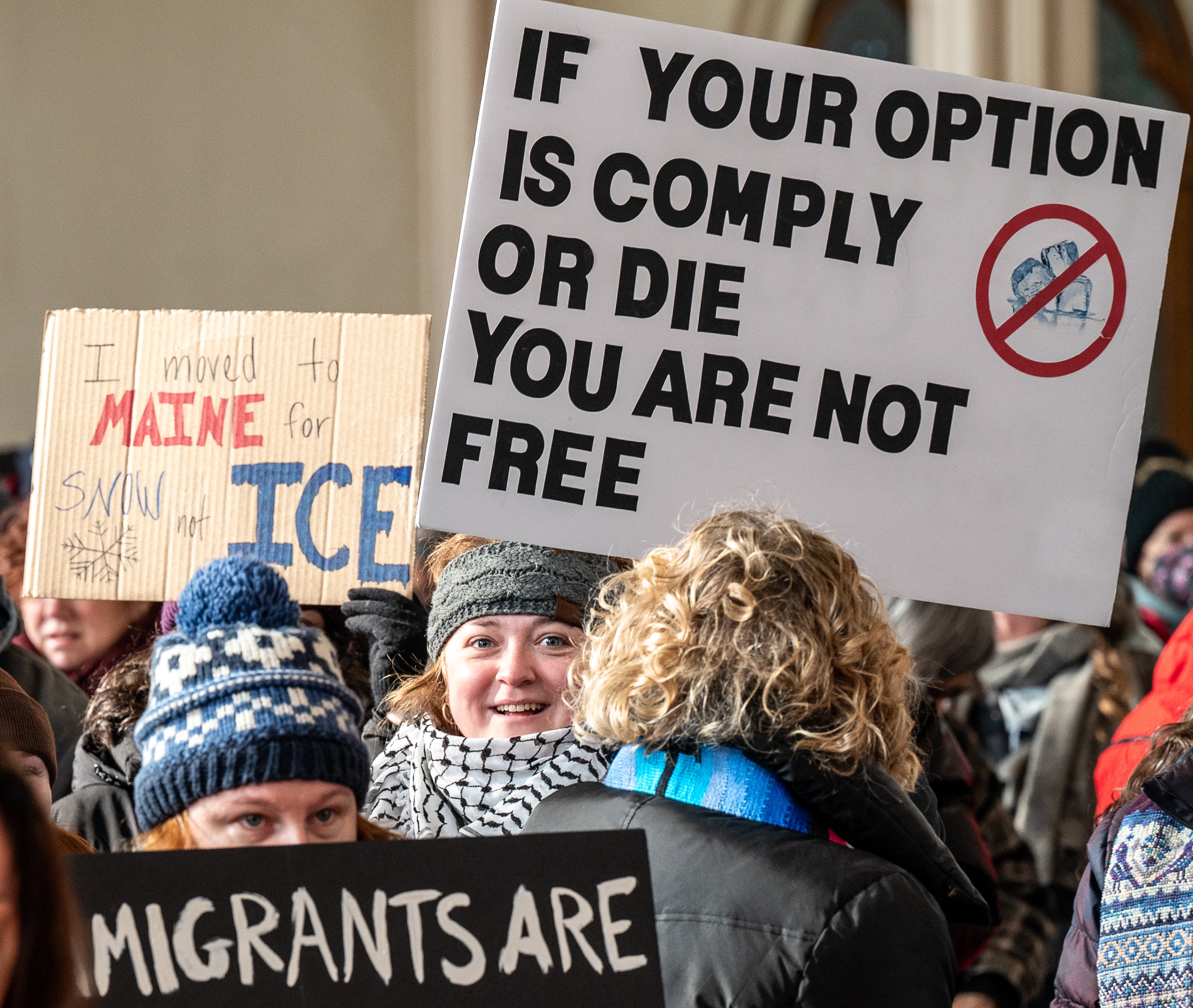 “We really wanted to be here just to support our community and show that we stand against the authoritarians that are working in Maine right now,” Bechard said. “It’s scary to see in our backyard and it motivated us to be able to come out and show strength in numbers with everybody.”