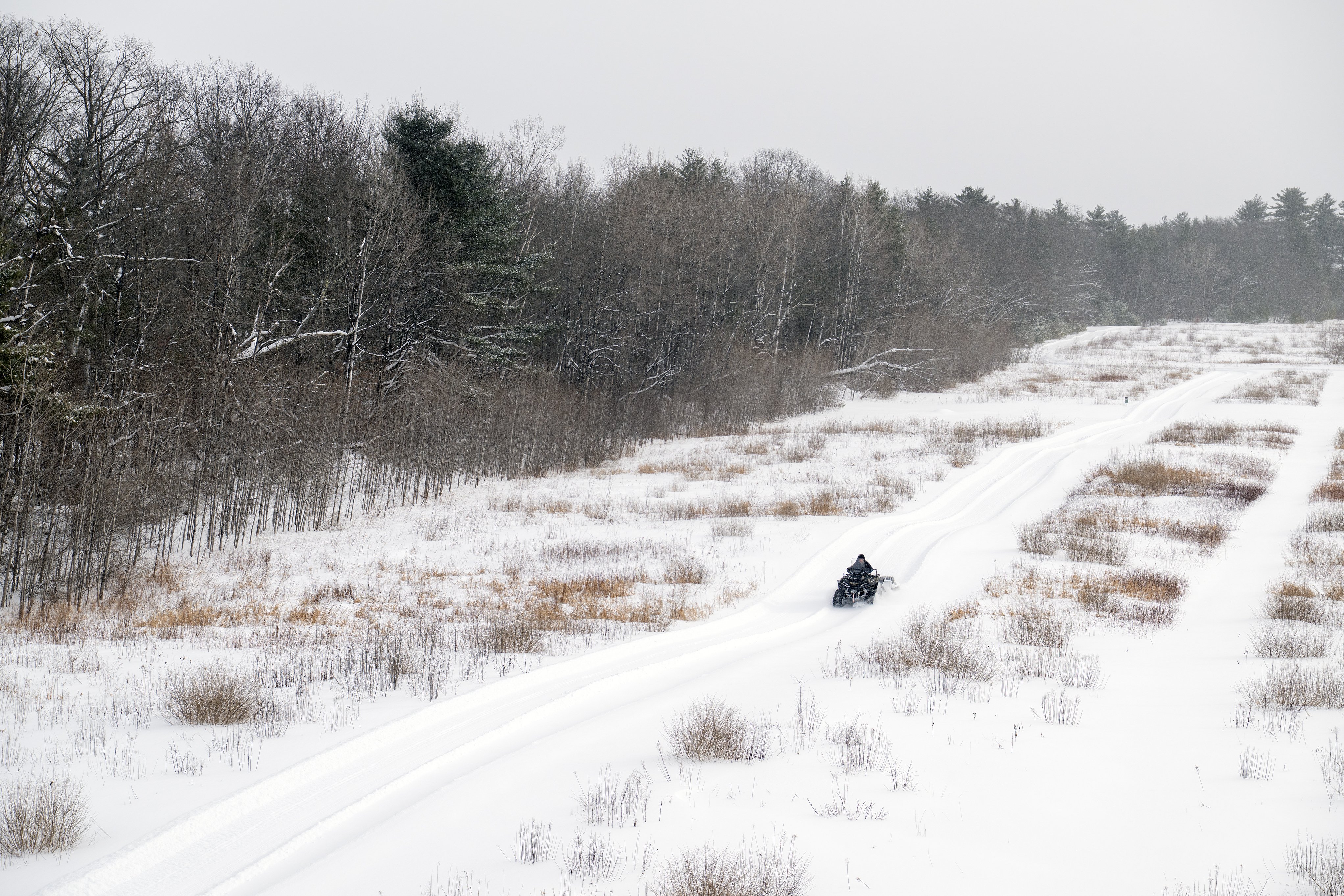 Volunteer Amos Woodward of Auburn grooms the cross-country ski trails Monday at the Auburn Nordic Ski Association's recreational area. He said he has not seen a storm like this one in at least eight years. “We used to get these all the time, but not anymore,” he said of the more than 12 inches that blanketed the city. For more on the story, see page C2. (Daryn Slover/Staff Photographer)