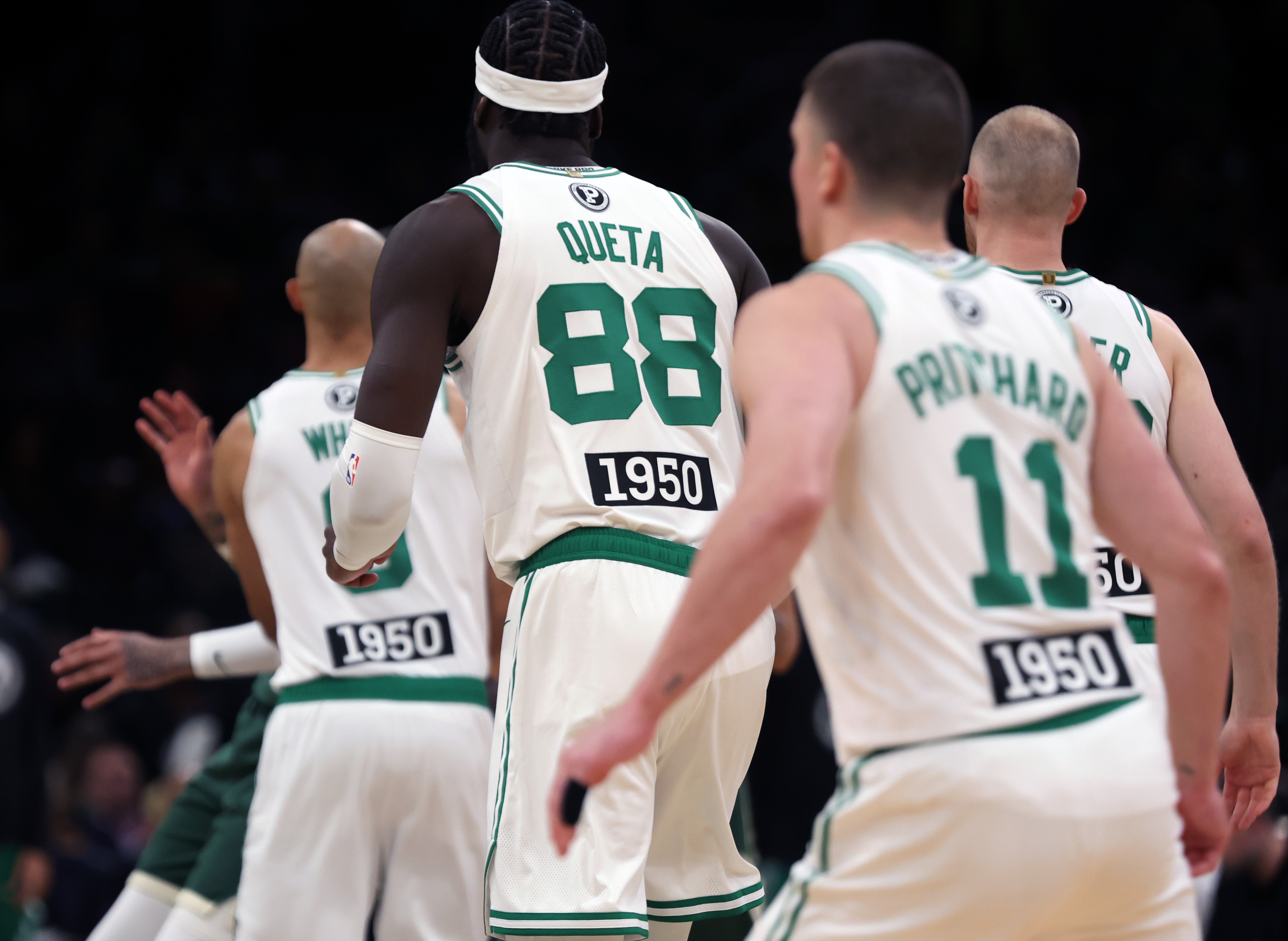 Boston teams wore commemorative jersey patches and warmup shirts. The players were honored on the first day of Black History Month.