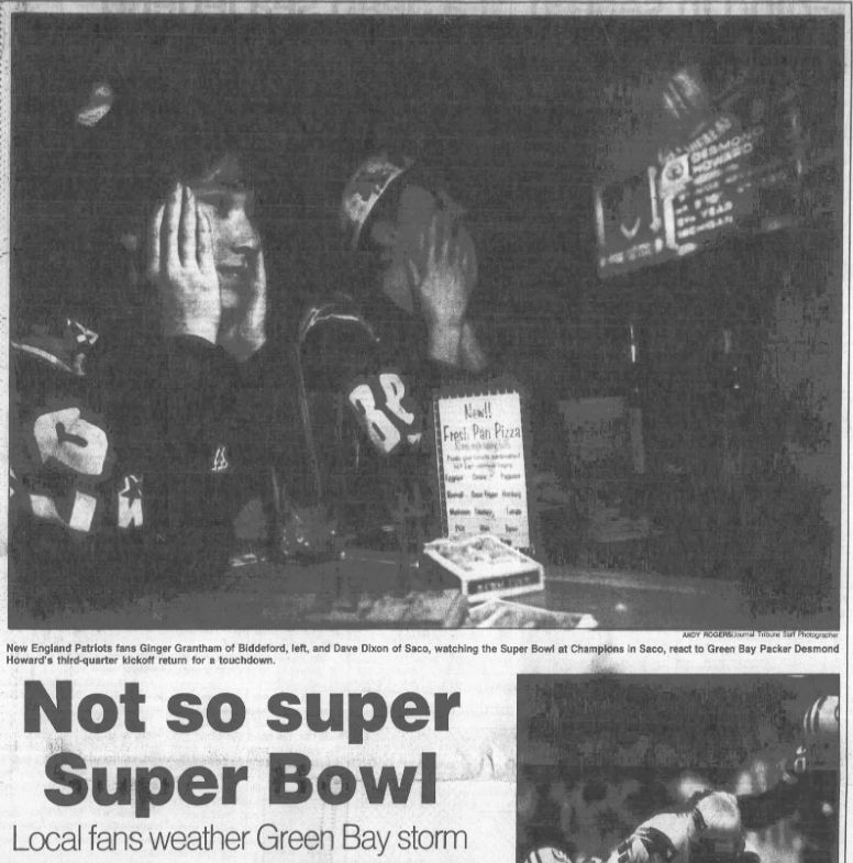 The Kennebec Journal covers another jubilant Super Bowl party, Feb. 4, 2002. (Courtesy of Newspapers.com)