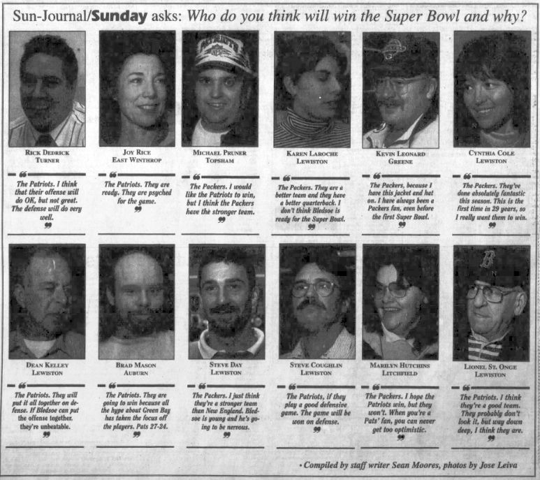 Polled by the Sun-Journal about who they thought would win, six people went with the Patriots, and six others with the Packers.