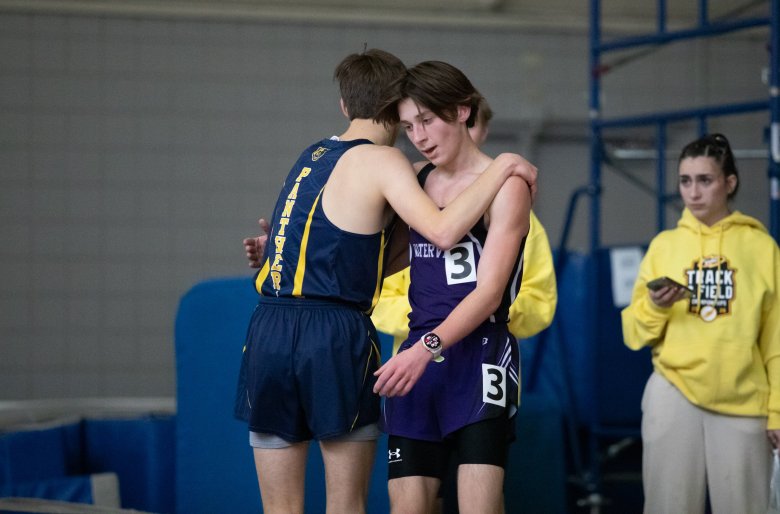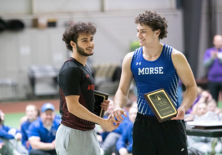 Winslow’s Hassan Hobbi and Waterville’s Charley Flees both earned a pair of wins in the boys meet. Hobbi won the 55 (6.79) and the 55 hurdles, while finishing third in the 400 (56.15). Flees won the 1-mile (4:48.60) and 2-mile (10:30.06).