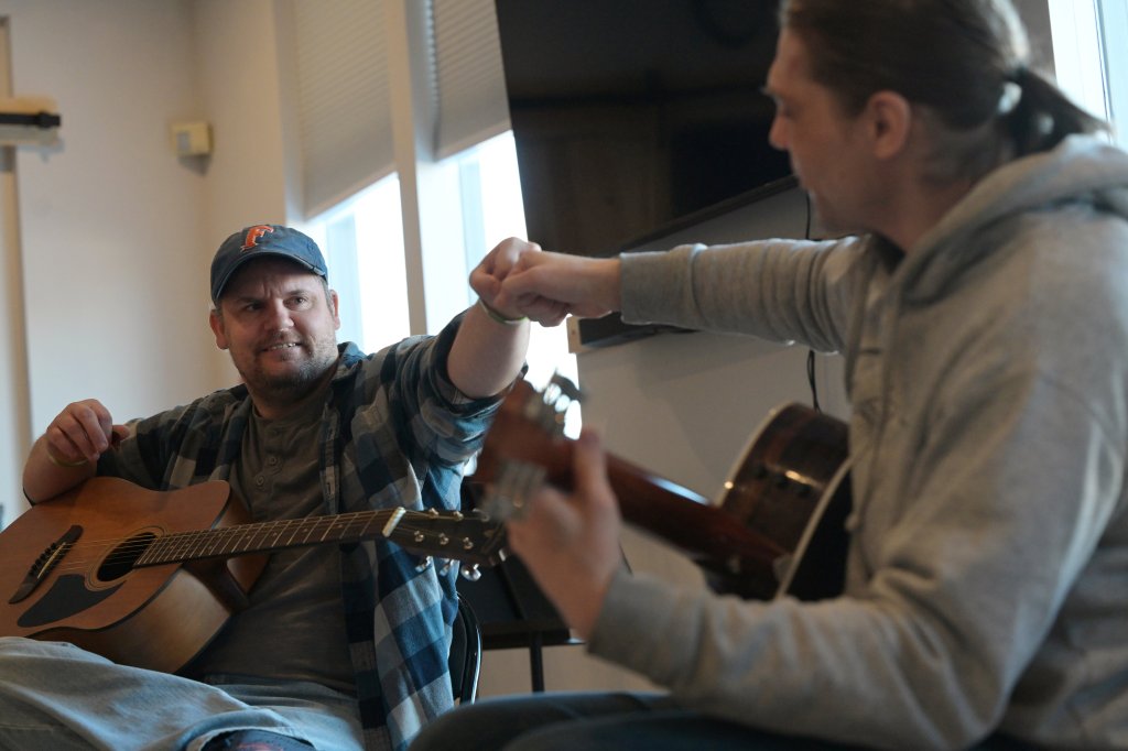 Hollis started writing songs in his adult ed English class and took more control of his learning in general. Every day, he’d seek out Bard to tell her he practices guitar every day at home until his fingers hurt, and he couldn’t believe his progress after years of people telling him he couldn’t do anything.