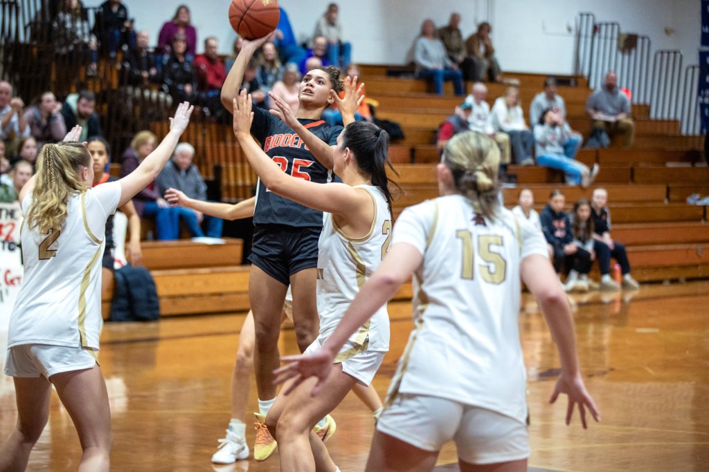 When leading the break at Biddeford, Jordyn Crump can sling the ball up the court with ease, and find open players with passes crossing the width of the floor.