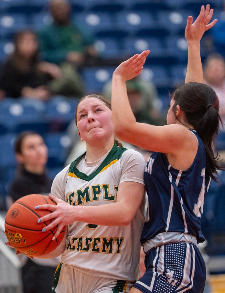 Maddie Corey scored 17 points to lead fourth-seeded Temple Academy to a 38-25 victory over fifth-seeded North Haven in a Class S South girls basketball quarterfinal Thursday at the Augusta Civic Center.