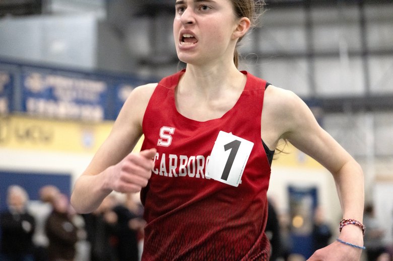 The Scarborough girls also won their second title in three years. Isabelle Harmon won the hurdles and pole vault, and Laurel Driscoll placed second in the 800 and mile, and third in the 2 mile to pace the Red Storm to 87 points. Hampden Academy was second with 62.