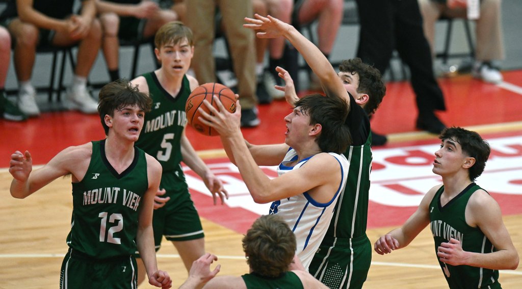 Hall-Dale’s Owen Free, center, and Dirigo’s Caden Hutchinson, left, fight for a rebound during a Class C South boys basketball quarterfinal Monday at the Augusta Civic Center. (Rich Abrahamson/aStaff Photographer)Dirigo’s Brady Philbrick shoots against Hall-Dale defenders Tayshaun Cleveland, left, and Davis Madore during a Class C South boys basketball quarterfinal Monday at the Augusta Civic Center. (Rich Abrahamson/Staff Photographer)Buckfield’s Taylor Harvey steals the ball from Boothbay’s Tatum French during a Class D South quarterfinal on Monday in Augusta. (Cooper Sullivan/Staff Photographer)Buckfield Sarae Devoe makes a foul shot during the Bucks’ 61-31 win over Boothbay in a Class D South quarterfinal on Monday in Augusta. (Cooper Sullivan/Staff Photographer)Waynflete’s Haviland Clark goes up for a shot while being defended by Maranacook’s Grady Hreben, left, Elijah Freeman, center, and Alex LaBelle during a Class C South quarterfinal on Monday in Augusta. (Rich Abrahamson/Staff Photographer)Maranacook’s Gage Mattson clears a rebound from Waynflete’s Haviland Clark during a Class C South quarterfinal. (Rich Abrahamson/Staff Photographer)Sacopee Valley’s Silas Nielson, right, and Mount View’s Brady Bryant battle for a loose ball during a Class C South quarterfinal on Monday in Augusta. Mount View won, 58-46. (Rich Abrahamson/Staff Photographer)Sacopee Valley’s Silas Nielson goes up for a shot against a sea of Mount View defenders during the Hawks’ 58-46 loss to Mount View in a Class C South quarterfinal on Monday in Augusta. (Rich Abrahamson/aStaff Photographer)Greely’s Victoria Zandan leaps to a first-place finish in the long jump. Zandan won with a best lead of 17-1 1/2. (Russ Dillingham/Staff Photographer)Winslow’s Hassan Hobbi, middle, clears a hurdle as he begins to pull away from the field on his way to an easy victory in the 55-meter hurdles at the Class B indoor track championship on Monday in Lewiston. Hobbi finished 7.98. (Russ Dillingham/Staff Photographer)Bryce Holden of Mt. Ararat competes in the long jump finals during the Class A indoor track and field state championships in Gorham on Monday. Holden won the event with a jump of 22-0.50. (Daryn Slover/Staff Photographer)Kate Morrison, left, of Portland and Grace Alexander of Cheverus/Waynflete head into the final lap of the 4×800-meter relay during the Class A indoor track and field state championships in Gorham on Monday. Portland went on to win the event with a time of 10:08.74, while Cheverus/Waynflete came in second (10:09.99). (Daryn Slover/Staff Photographer)