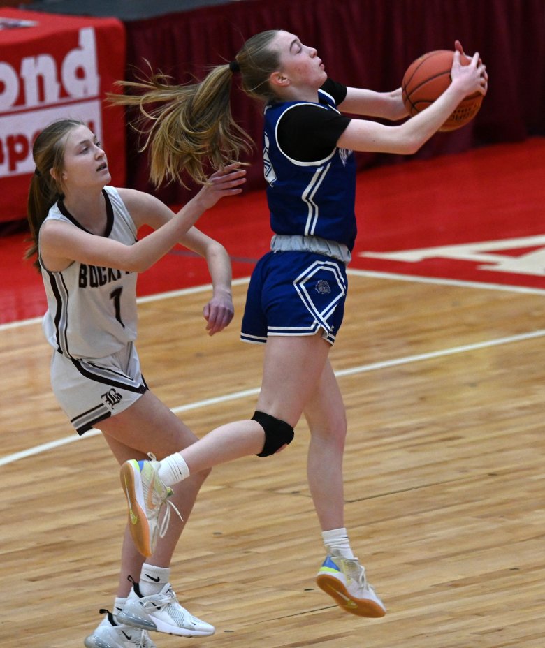 Devoe, who got her black eye in a quarterfinal win over Boothbay on Monday and had one earlier in the season as well, helped the Bucks take 16-8 halftime lead in Breton’s absence. Devoe had six rebounds and an assist in the second quarter. She finished with nine points, 10 rebounds and three assists.